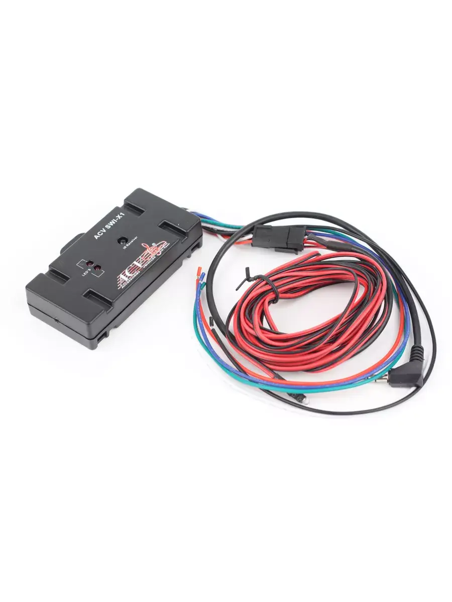 Адаптер штатных кнопок на руле ACV SWI-X1-Интерфейс, позволяющий управлять новым головным устройством с кнопок руля. Это герметичный модуль с проводами, который может использоваться для любых автомобилей, оборудованных резистивными кнопками на руле.