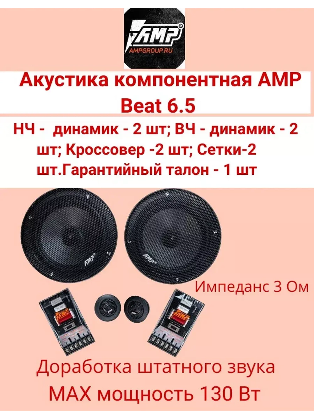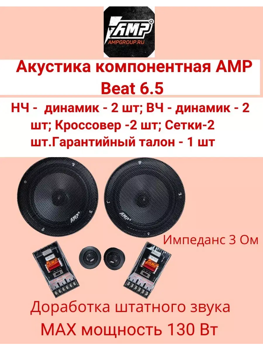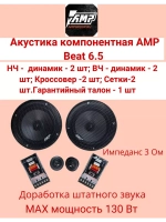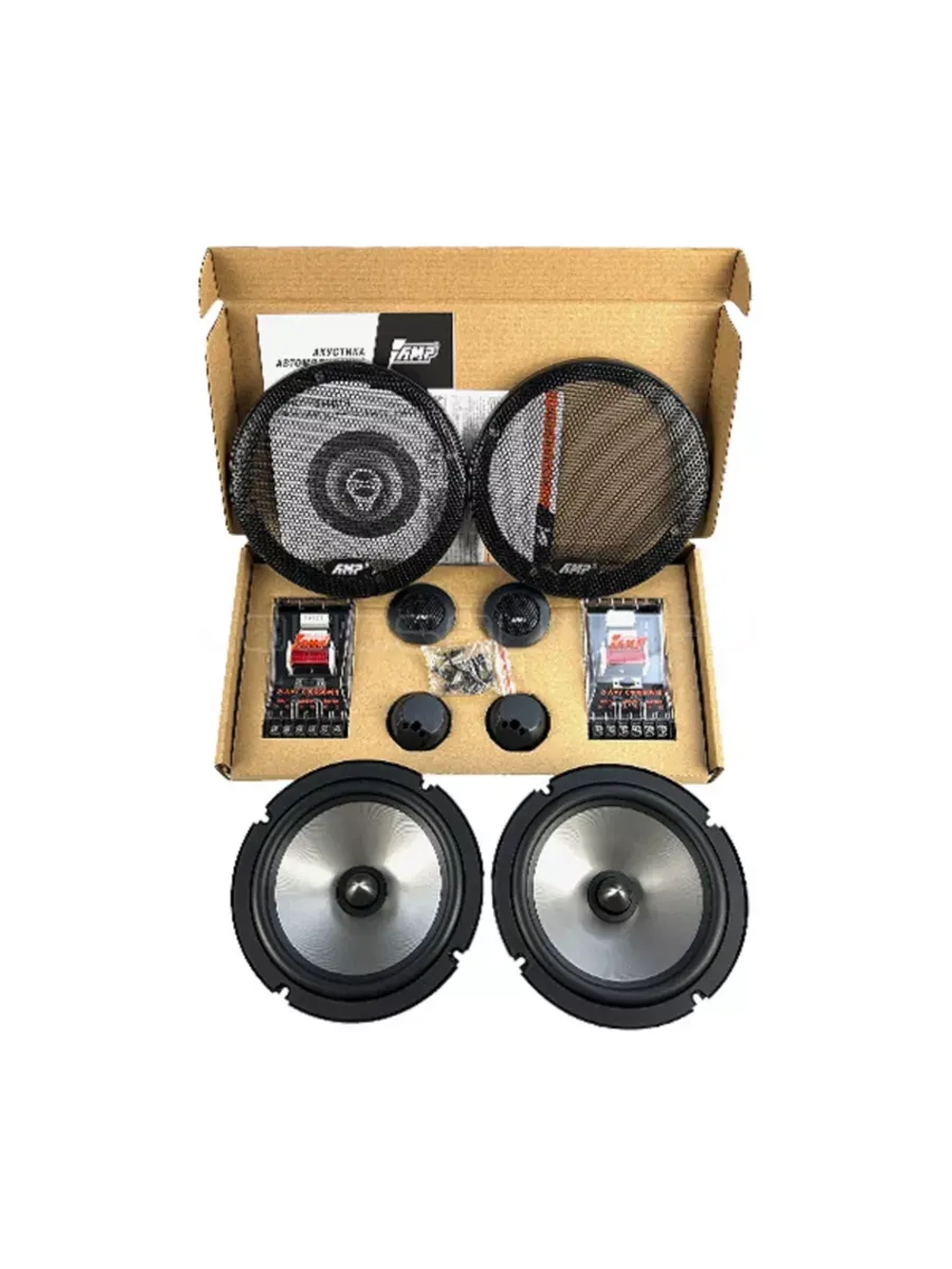 Компонентная акустика - это набор динамиков разного частотного диапазона. Это выбор водителя, которому категорически важно качество звучания в своём авто. Компонентная акустика серии AMP MASS ориентирована на простую доработку штатного звука. Кол дадут лучшее, объемное и гораздо качественное звучание. MASS 5.25 и MASS 6.5 специально разрабатывались с прицелом на работу от головных устройств. Beat (LB) 6.5Компонентная акустика в 16 сантиметровом типоразмере. В динамиках применяется фазовыравнивающее тело «пуля» для расширения диаграммы направленности, это положительно сказывается на звуке при установке в штатные места. Легкая подвижная часть Beat 6,5 дает использовать акустику с любыми магнитолами. А защитные сетки отлично подойдут при наружной установке .Автоколонки без сомнения подойдут тем, кто не хочет заморачиваться с дополнительными усилителями и проводами. Не смотря на среднюю цену нам удалось добавить в комплект полноценный кросовер и шелковый твиттер, что положительно сказалось на звуке. Хорошее решения для установки в передние двери автомобиля, особенно в те автомобили, которые не оснащаются штатными "пищалками". Превосходство компонентных систем в качестве звука достигается за счёт особенностей строения. Каждый динамик в такой системе действует автономно, поэтому воспроизводит гораздо более сложные переходы и сочетания звуков, что и делает музыку божественной. Серия MASS это то, с чего начинается правильный звук в твоем автомобиле!