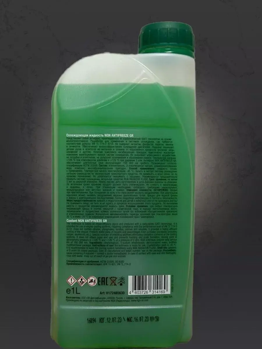 Рекомендуется использовать антифриз NGN GR-45 в охлаждающих системах автомобилей. Он имеет температуру кристаллизации -45 °C и продается в упаковке размером 10х10х20 см с весом 1,2 кг. Артикул производителя - V172485639.
