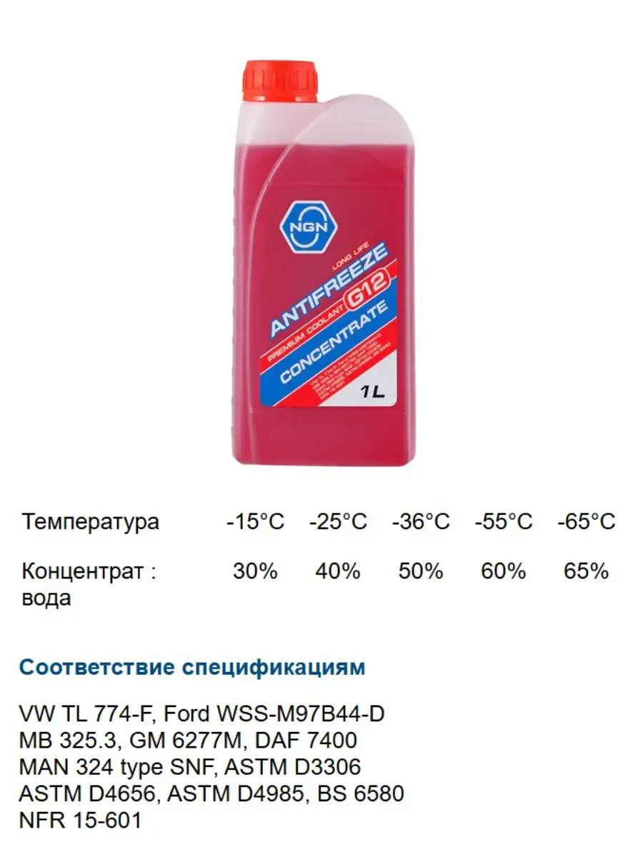 Антифриз, концентрат G12 красный 1л NGN V172485620