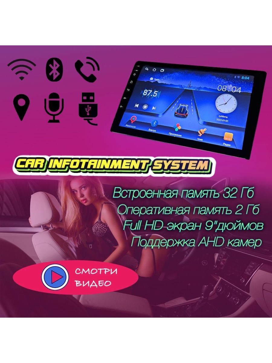 Автомагнитола ШГУ с Full HD экраном 9 " дюймов с высокоскоростным процессором, оперативной памятью 2 Гб и встроенной памятью 32 Гб на Android 11, с Bluetooth, Wi-Fi, GPS и 2 USB. Поддержка AHD камер. Выход на фронт (4 высоких и 2 низких) и сабвуфер. Экран не бликует - IPS матрица. Подключение камеры заднего вида различных форматов и большим набором настроек. Магнитола автомобильная имеет сенсорный экран, позволяет включать музыку и видео, подключаться к интернету, скачивать фильмы, приложения, навигатор. Эквалайзер. Можно подключить свой телефон к автомагнитоле по блютуз и управлять звонками: можно отвечать и отклонять вызовы, набирать номер прямо на экране. Это удобно, позволяет не занимать руки, когда вы за рулем. Управление автомагнитолой и вызовами кнопками руля. Магнитола автомобильная с экраном 9 дюймов оборудована GPS для навигации в дороге. Вы можете скачать любое приложение, например Яндекс навигатор, и простроить маршрут до нужного адреса. Магнитола с экраном 9 дюймов подходит для 99% автомобилей с помощью переходной рамки (в комплект не входит). Наша магнитола будет отличным подарком для мужчины и женщины, на Новый год!