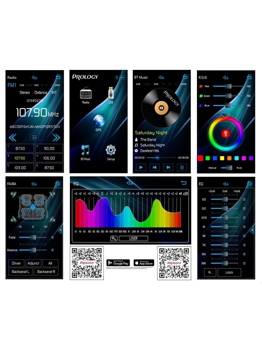 PROLOGY CMD-310 -FM / USB ресивер с Bluetooth и встроенным DSP - аудиопроцессором, стандартного размера 1DIN, который обеспечивает прием радиостанций в диапазоне FM / УКВ / AM и воспроизведение медиафайлов MP3, WAV, и FLAC форматов, записанных на USB накопители, передачу звука с внешних источников через линейный аудиовход и беспроводной интерфейс Bluetooth. Поддерживается управление мобильным телефоном через интерфейс Bluetooth (ver. 4,2).Устройством можно управлять при помощи мобильного приложения Prology Audio* , установленного на Ваш смартфон с операционной системой Android или iOS. Мультиподсветка экрана и кнопок. Посмотрите скриншоты из приложения PROLOGY AUDIO - широкие возможности звуковых настроек и управления DSP процессором :- многополосный эквалайзер- фильтры- временные задержки. Эквалайзер 25-ти полосный. USB. AUX. Максимальная мощность 4х55 Вт. Выходы RCA - 3 (2 фронт, 2 тыл, 1 сабвуфер). Размер 1 din. Bluetooth. Эта автомагнитола является аналогом AURA 66DSP, AURA 77DSP, AURA 88DSP, AURA 78DSP Магнитола /ресивер /магнитола в автомобиль/мафон /1DIN /в машину /в автомобиль. Автомагнитола – это встроенное в панель авто устройство, которое позволяет слушать музыку в любое время дня и ночи. Можно выбрать радио или треки, записанные на флеш-накопитель, смартфон, планшет или любой другой мобильный девайс. С гаджетом, у которого есть выход в интернет, доступно и онлайн-проигрывание.