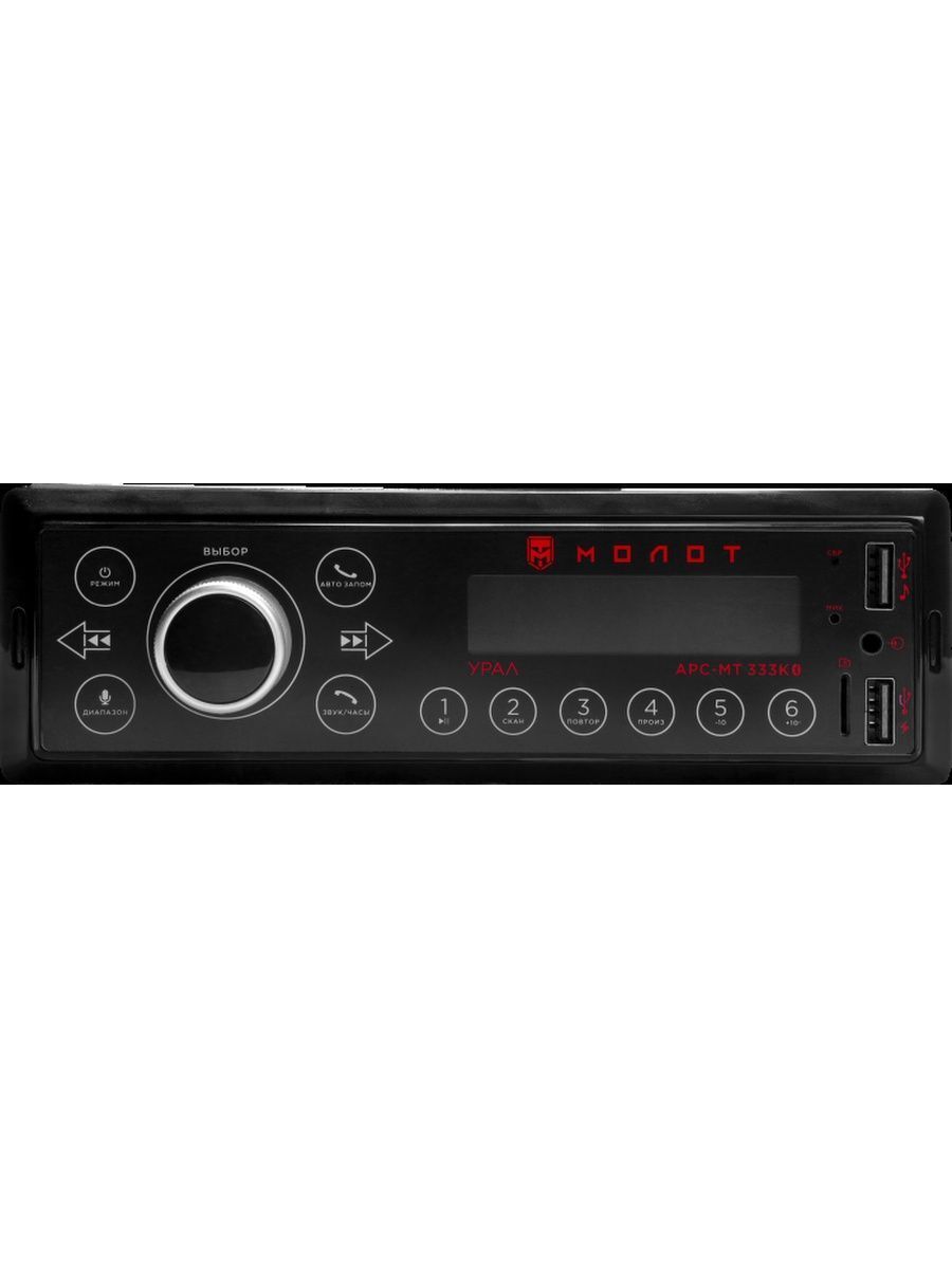 Магнитола Урал URAL АРС-МТ 333К имеет следующие параметры: напряжение питания - 14,4 (12) В, установочные размеры - 182 х 53 х 105 мм, диапазон принимаемых частот тюнера - 87,5 – 108 МГц, частотная характеристика аудиопроигрывателя - 20 - 20000 Гц.Разъемы на передней панели AUX, SD/MMC, USB x2.