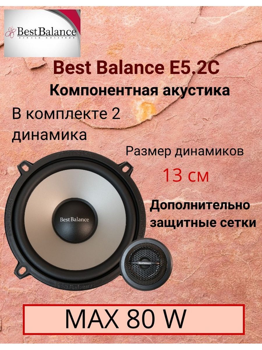Акустическая система в машину Best Balance E5.2C 13 см компонентные (2 штуки) - это оптимальный вариант для создания качественного звучания всех частот звукового диапазона. Колонки для машины выполнены из качественных и долговечных материалов, что обеспечивает прекрасный сбалансированный звук, насыщенное, мощное и чёткое звучание. Акустика для автомобиля идет с мощной магнитной системой и стильным дизайном, способный развивать экстремальную громкость от маломощного усилителя и даже от головного устройства. Динамики в авто собрали в себе самое лучшее: жесткий диффузор из качественного полипропилена и резиновый подвес, расположенные на стальной корзине с удобным ободом для монтажа. За счет магнитной системы удалось достичь отличного качества звучания и громкости, даже от усилителей с небольшой мощностью, в т.ч. от встроенных усилителей автомобильных магнитол. Динамики в авто легко устанавливаются, подходят на большинство штатных установочных мест за счёт малой посадочной глубины и стандартизированного размера. ВЧ-динамики имеют шёлковый купол со специальным напылением, который снижает резонансную частоту твиттера, а также апертурное тело, которое обеспечивает отличную диаграмму направленности. Акустика для автомобиля такого типа имеет свои достоинства: простота и легкость установки, чистый звук, излучение частот из одной точки и невысокая стоимость системы. Автомобильные динамики в машину обладают лёгкими габаритами и высоким качеством звука. Товары для авто устанавливается в двери или стойки автомобиля. Все характеристики данных товаров для автомобиля соответствуют высоким требованиям как к звуку, так и к общей надёжности, способности выдерживать ощутимые нагрузки продолжительное время. В комплекте Best Balance E5.2C имеются дополнительные чашки для монтажа твиттеров, а также защитные сетки для мидбасов. Технические характеристики: Серия - EMOTION. Размер - 5,25" (13 см). Мощность - 30/80 Вт. Сопротивление - 4 Ома. Частотный диапазон - 80-20000 Гц. Чувствительность - 89 Дб. Монтажный диаметр - 116 мм. Посадочная глубина - 56 мм. Дополнительно - защитные сетки.