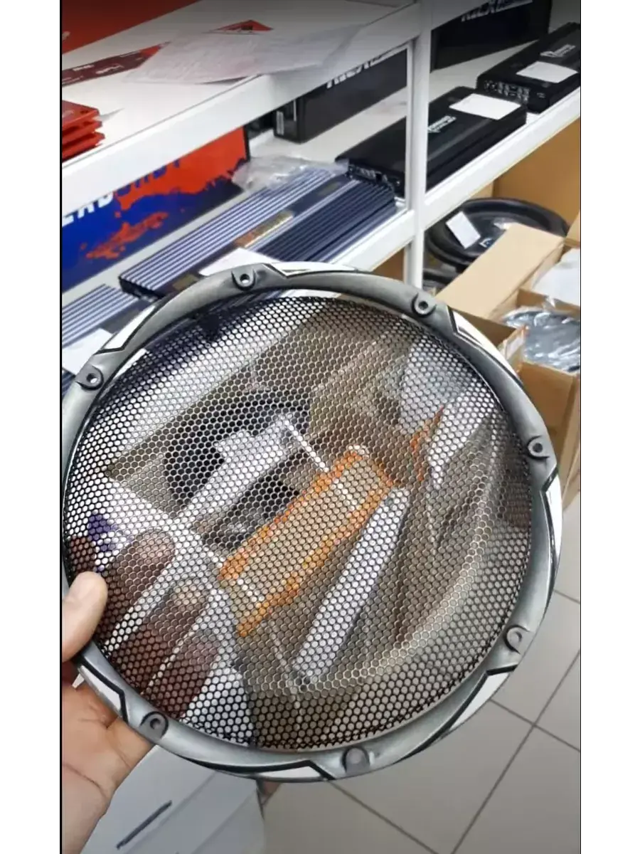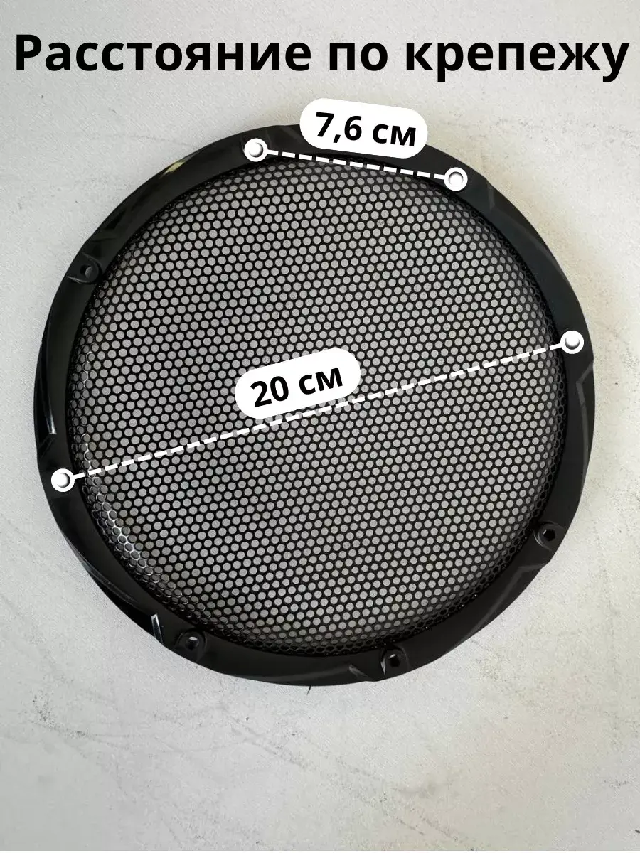 Универсальные, защитные сетки для круглых динамиков размером 20 см или 8 дюймов. Подойдут на большое количество автодинамиков даже на Pride. Крепятся на поверхность колонки для защиты от внешних повреждений, таких как пыль, царапины и влага. Решетка для акустики улучшает внешний вид аудио системы. Материал сетки сталь. Гаскет из пластика.