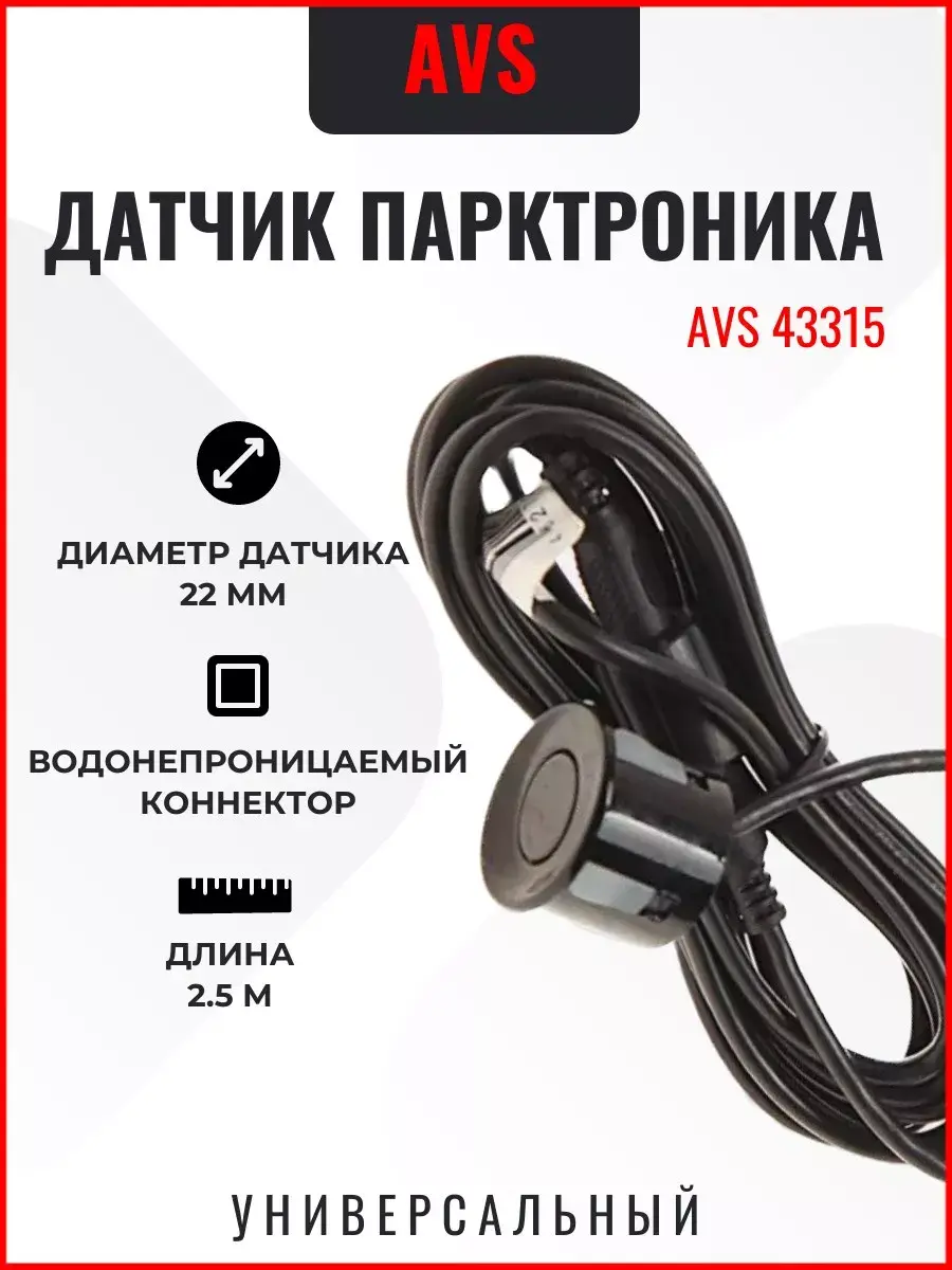 Датчик парковочной системы для замены прост и удобен в установке благодаря водонепроницаемому коннектору. Имеет индекс защиты от попадания влаги и пыли IP-67, что обеспечит долгую и надежную работу в любых условиях. Диаметр датчика: 22 мм Цвет: черный IP-защита: 67 Длина кабеля: 2,5 м Водонепроницаемый коннектор Состав: Пластик.Тип модели врезной. Тип подключения проводное.