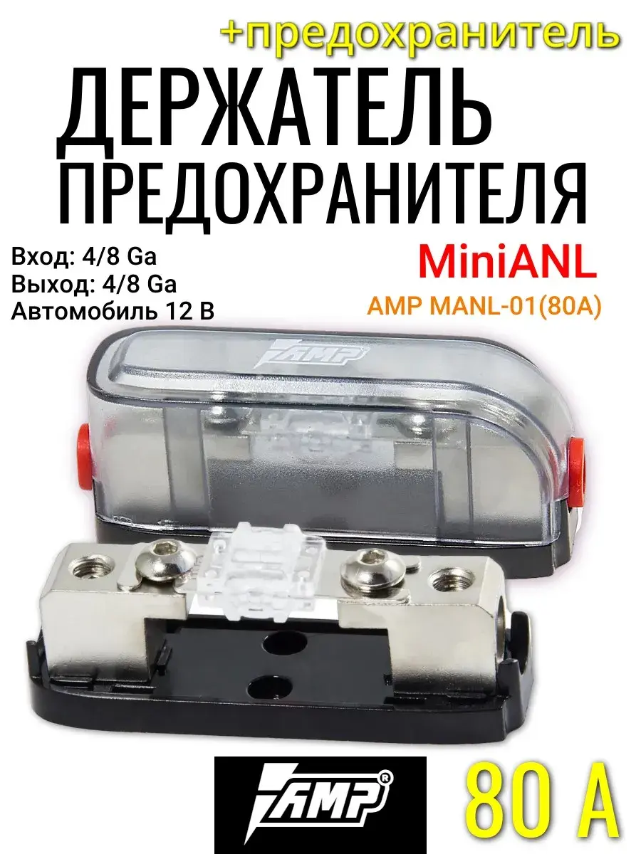 Комплект 1шт. Держатель автомобильного предохранителя с колбой AMP MANL-01 (80A) 1шт предназначен для установки предохранителей с током до 80 Ампер для предотвращения выхода из строя автоэлектроники и возгорания в случае короткого замыкания. Он обеспечивает надежное крепление и защиту его от внешних воздействий. Изготовлен из качественных материалов. Устойчив к коррозии. Имеет компактный размер.Простота установки и замены предохранителя. Подходит для использования с различными типами предохранителей.