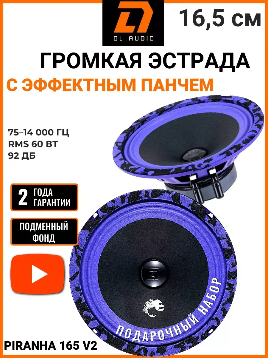 Хочешь заменить штатку в своем автомобиле ? Тогда лучшая бюджетная авто акустика для тебя! Обновленная версия автомобильных, эстрадных динамиков Dl Audio piranha 165 v.2, более громкая с эффектным панчем для своего бюджета. Набор автоакустики состоит из пары, круглых, среднечастотных колонок в машину в размере 16.5 см или 6,5 дюймов. Автоколонки с номинальной мощностью 60 и чувствительностью 92 Дб. Обладают идеальным балансом баса, стиля и приятного звучания в диапазоне от 75-14000Гц. Автодинамики на штампованной стальной корзине с ребрами жесткости и пылезащитным колпаком из майлара. Имеют сбалансированную АЧХблагодарякольцу Фарадея и двухволневой тканевый подвес со специальной пропиткой.Просты в установке, подойдут для фронта в передние и задние двери для музыкальной аудио системы. Будут отличным подарком для мужчины и женщины и любого любителя автозвука.