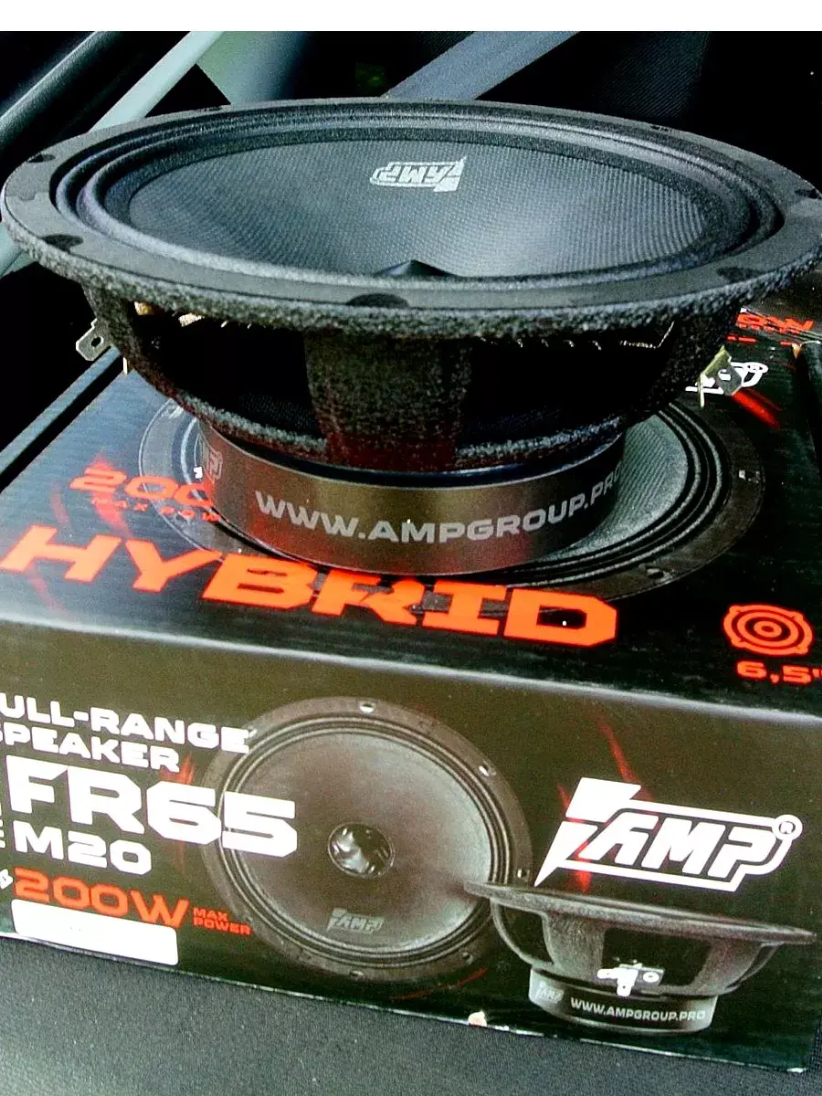 Автомобильные широкополосные колонки Amp Hybrid FR65M20 — это начальная модель в линейке с приятным панчем. Комплект состоит из двух круглых эстрадных динамиков в машину размером 16,5 см или 6,5 дюймов. Магнитная система гибридных автоколонок выполняется из двух видов магнита, большое массивное ферритовое кольцо снаружи и внутри в крене неодимовая шайба, что позволяет повысить КПД за счет более мощного магнитного поля в зазоре. Благодаря повышенной эффективности им не нужно много мощности. Музыкальные автодинамики для автозвука с номинальной 100 Вт и максимальной 200 Вт. Обладает высокой чувствительностью 93 Дб. Отличную громкость и широкий частотный диапазон 130 - 12000 Гц обеспечивает облегченный диффузор с алюминиевым пылезащитным колпачком. Выполнены на двухволновом подвесе с пятиволновой шайбой с очень легкой подвижной частью. Корзина с анти резонансным покрытием. Качественная сборка.Подойдет для передних, задних дверей, в клатику, для профессиональных и домашних аудио систем. Оригинальный товар с гарантией от производителя.
