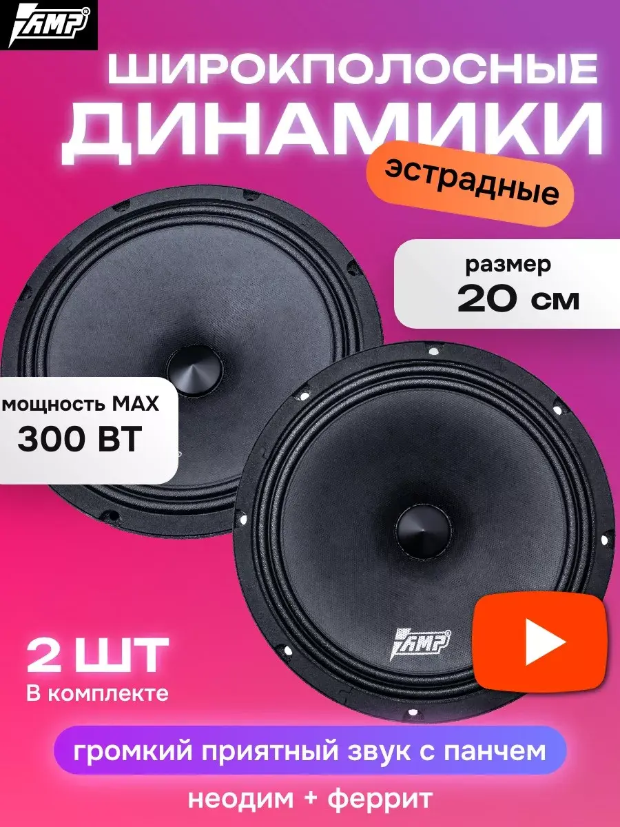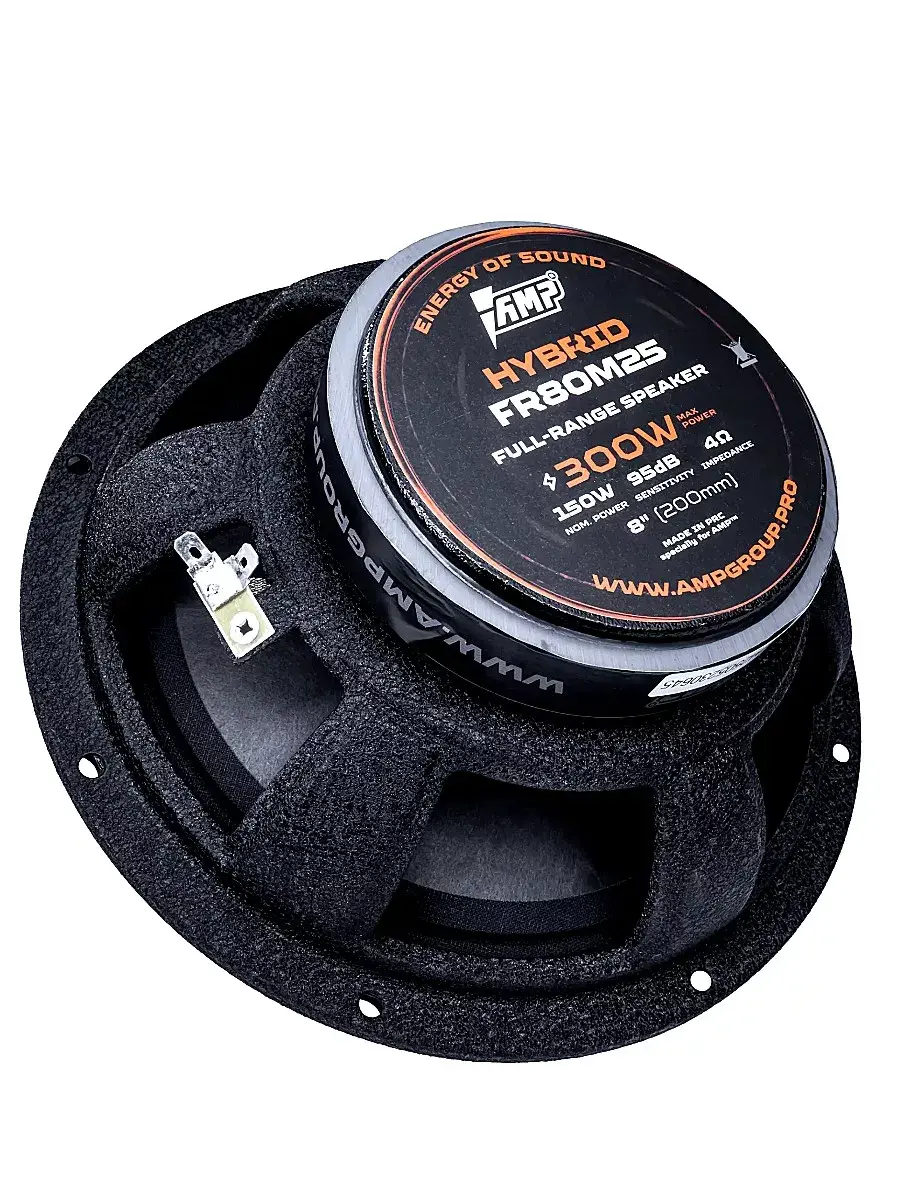 Автомобильные широкополосные колонки Amp Hybrid FR80M25 — более низко играющая модель в линейке с приятным панчем. Комплект состоит из двух круглых эстрадных динамиков в машину размером 20 см или 8 дюймов. Магнитная система гибридных автоколонок выполняется из двух видов магнита, большое массивное ферритовое кольцо снаружи и внутри в крене неодимовая шайба, что позволяет повысить КПД за счет более мощного магнитного поля в зазоре. Благодаря повышенной эффективности им не нужно много мощности. Музыкальные автодинамики для автозвука с номинальной 150 Вт и максимальной 300 Вт. Обладает высокой чувствительностью 95 Дб. Отличную громкость и широкий частотный диапазон 110 - 10000 Гц обеспечивает облегченный диффузор с алюминиевым пылезащитным колпачком. Выполнены на двухволновом подвесе с пятиволновой шайбой с очень легкой подвижной частью. Корзина с анти резонансным покрытием. Качественная сборка.Подойдет для передних, задних дверей, в клатику, для профессиональных и домашних аудио систем. Оригинальный товар с гарантией от производителя.