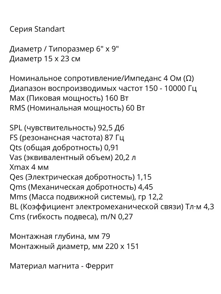 Автомобильные, эстрадные колонки FSD audio Standart 690L - это комплект из пары овальных динамиков в машину размером 6х9 дюйма или 15х23 см с номинальной мощностью 60 Вт и максимальной 160 ВТ. Обеспечивают чистый и ясный звук в средних частотах. Прекрасно играют от штатки, идеальный вариант для замены штатной аудио системы в авто. Подойдут для установки в передние, задние двери и для домашней акустической системы. Обладают качественной сборкой.