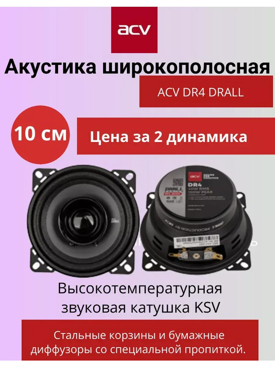 Цена указана за 2 динамика. Широкополосная акустика 10 см (4 дюйма) для качественного звука в вашем автомобиле. Идеально подходит для работы со штатным ГУ, обладает превосходным запасом мощности и широким диапазоном частот. Очередное эффективное решение компании ACV для качественного воспроизведения аудио без существенных конструктивных изменений.