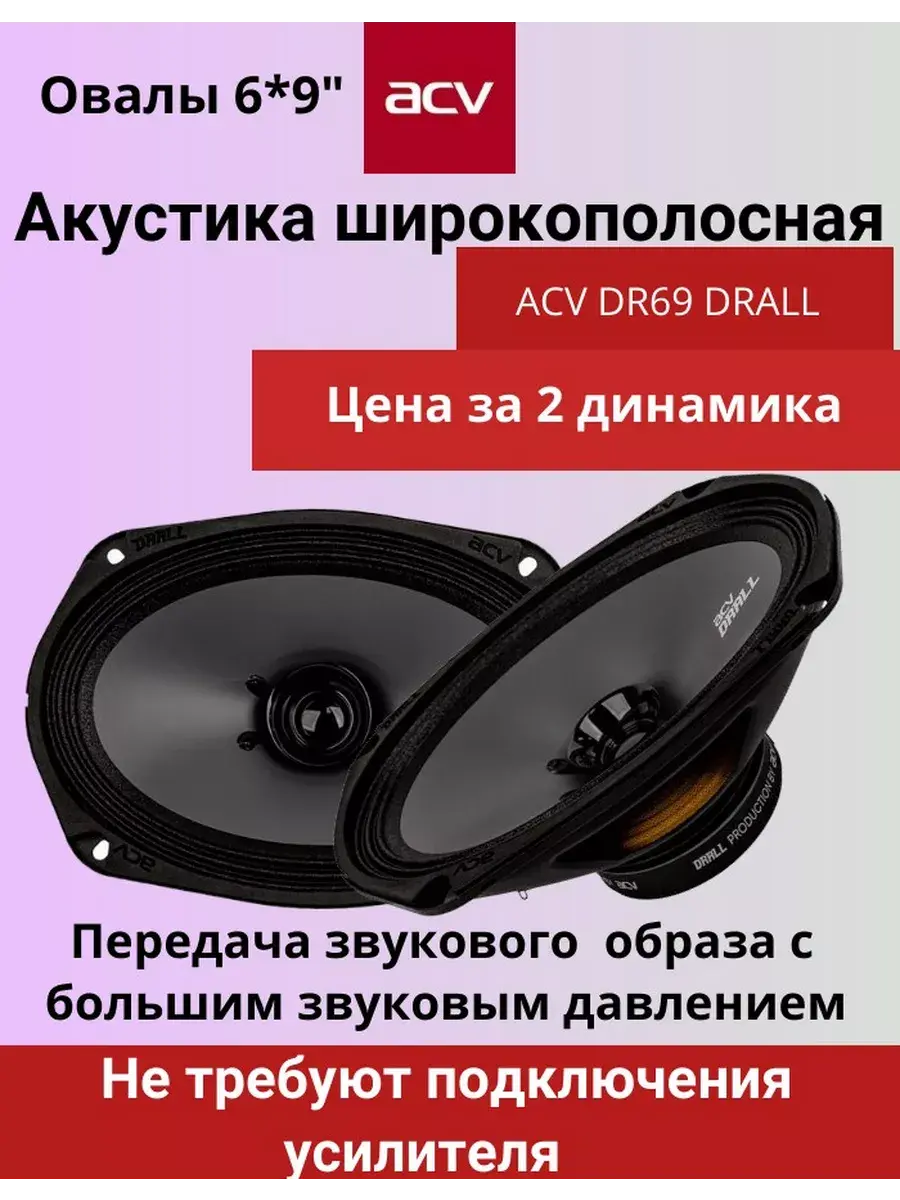 Цена указана за 2 динамика. Широкополосная акустика 6*9" (152*228 мм) для качественного звука в вашем автомобиле. Идеально подходит для работы со штатным ГУ, обладает превосходным запасом мощности и широким диапазоном частот. Очередное эффективное решение компании ACV для качественного воспроизведения аудио без существенных конструктивных изменений