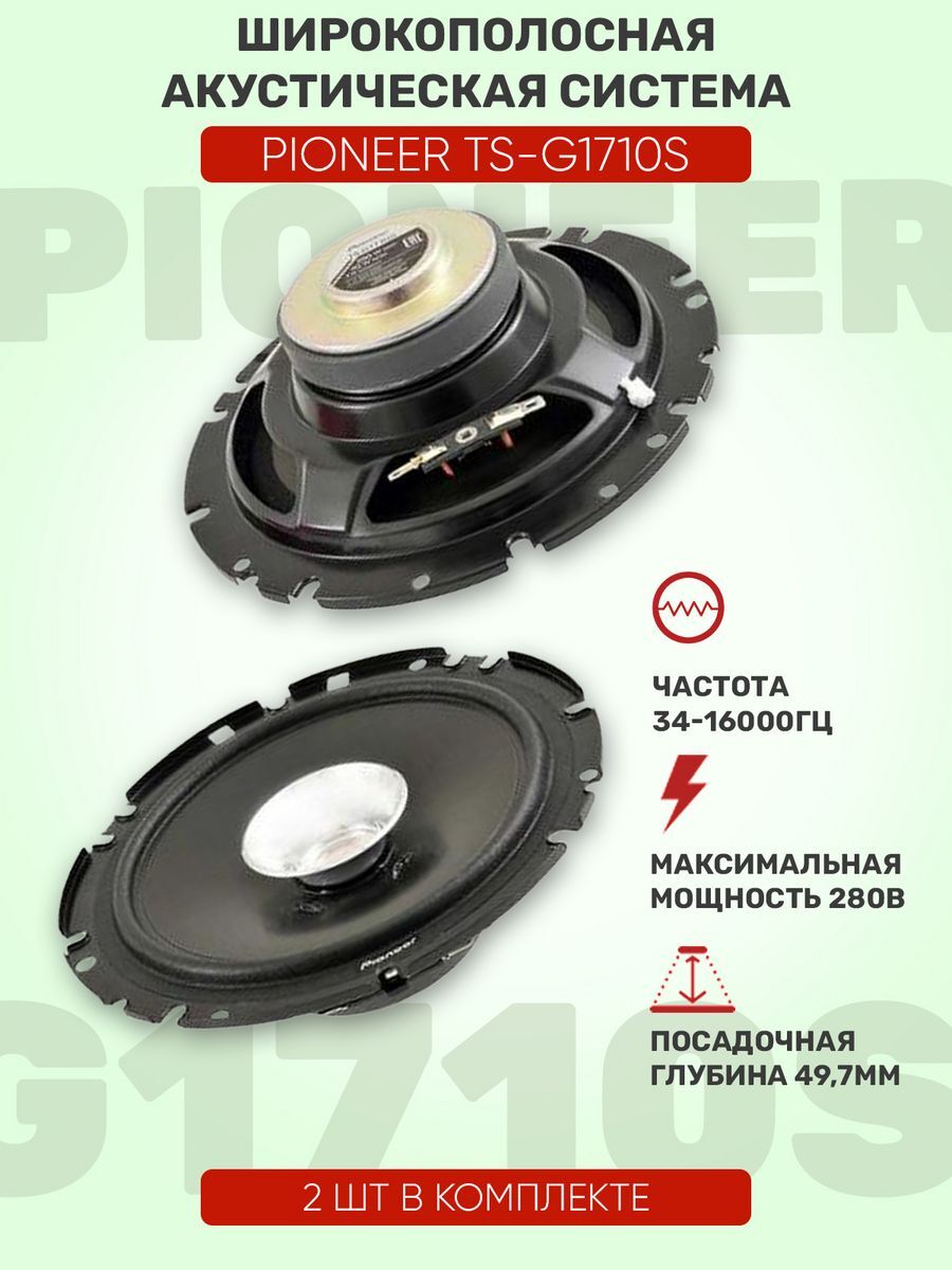 Автомобильная акустика Pioneer TS-G1710S -улучшенная линейка динамиков серии G предназначена для мощных аудиосистем премиум-класса и доступна по привлекательной цене. Прочная конструкция и оптимальное расположение отверстий для крепежных болтов делают установку любых динамиков серии G невероятно простой. Благодаря увеличенным характеристикам мощности и высокой чувствительности этот автозвук воспроизводит глубокие, выразительные басы и естественные высокие частоты даже на большой громкости.