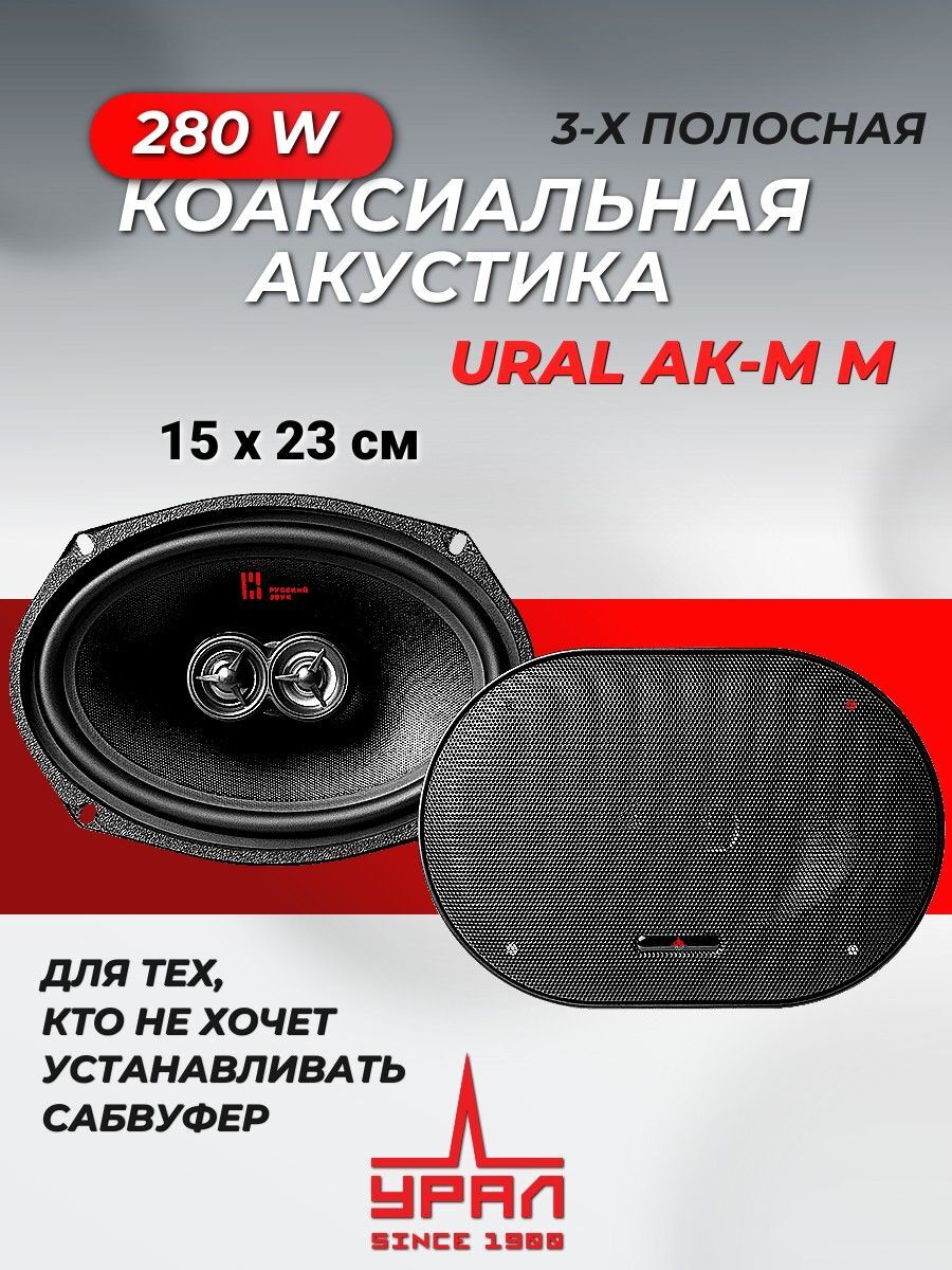 Акустическая, коаксиальная система Урал АК-М М – это комплект из двух овальных динамиков в машину размером 6х9 дюймов или 15х23 см . Аудиосистема чаще всего устанавливается в заднюю акустическую полку автомобиля.Отличный выбор для тех, кто не хочет устанавливать сабвуфер. Преимущества автодинамиков: Прочный диффузор на основе целлюлозы обеспечивает мягкий глубокий бас. Расширенный высокочастотный диапазон за счет одновременного применения шёлкового купольного твитера и дополнительного майларового. Акустика обладает высокой перегрузочной способностью. Диапазон частот 42 - 23000 Гц. Максимальная мощность 280 Вт. Сопротивление, Ом 4. Чувствительность, дБ 92.