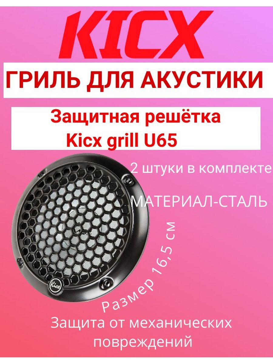 Универсальный гриль решётка для динамиков диаметром 6.5" (165мм) Kicx grill U65.Цена за 2 штуки.ПРЕИМУЩЕСТВА: Антикоррозийное покрытие Простая установка с помощью входящих в комплект монтажных винтов и шестигранника Технология моно штамповки для снижения резонанса и дополнительной жесткости ХАРАКТЕРИСТИКИ: Тип: Защитная решетка для динамика Размер дюймы, мм: 6,5" (165мм) Материал: сталь с антикоррозийным покрытием Форм фактор ячеек: шестигранник Технология изготовления: моно штамповка Комплектация: решетки 2 шт., винты, шестигранник Особенности: технология моно штамповки придает снижения резонанса и дополнительную жесткость.