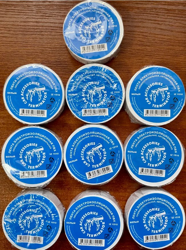 Автомобильная, универсальная изолента Терминатор IZ-1510W ПВХ белого цвета. Прекрасно подойдет как в ремонте автомобиля так и дома. Самоклеящийся материал, который имеет высокие показатели электроизоляционных и механических свойств. Электроизоляционная лента чаще всего используется в промышленности или быту для изоляции токоведущих частей и электрических соединений. Отлично справляется с высоким напряжением, воздействием окружающей среды, повышенной влажностью и температурными перепадами. Профессиональная, холодостойкая, не поддерживающая горение. Стойкая к воздействию агрессивных жидкостей и масел. Применяется для изготовления пучков кабелей (жгутования). Клейкая изолента Terminator IZC 1920, толщина 0,13мм, ширина 15мм, длина 10м, холодостойкая, огнеупорная.Диапазон рабочих температур: -50/+80 С. Толщина полотна 0,13мм. Длина мотка 10 метров и ширина 15мм достаточна для выполнения различных задач при ремонте автомобиля и в быту. В тубе 10 штук.