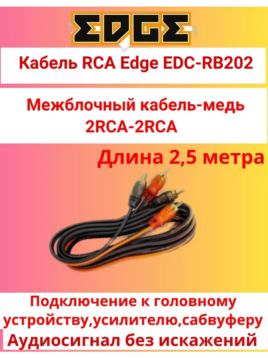 Автомобильный кабель RCA Edge EDC-RB202: Применяется бескислородная медь 99,99%. В современном мире автомобильный кабель становится неотъемлемой частью автомобильного аудиооборудования. Одним из лучших представителей этого сегмента является автомобильный кабель RCA Edge EDC-RB202 - это автомобильный аудиокабель, предназначенный для передачи аудиосигнала между различными компонентами стереосистемы автомобиля. Он оснащен двумя разъемами RCA на каждом конце, что позволяет легко подключать его к различным устройствам, таким как головное устройство, усилитель или сабвуфер. Этот автомобильный кабель изготовлен из высококачественных материалов, что обеспечивает его долговечность и надежность в использовании. Внешняя оболочка кабеля сделана из гибкого и прочного материала, который устойчив к механическим повреждениям и воздействию окружающей среды. Это гарантирует, что кабель прослужит долго и не потеряет своих свойств со временем. Одним из главных преимуществ автомобильного межблочного кабеля Edge является его способность передавать аудиосигнал без потерь и искажений. Это достигается благодаря использованию качественных проводников и специальной технологии экранирования, которая предотвращает внешние помехи и обеспечивает чистое звучание. Еще одной особенностью этого автомобильного кабеля является его гибкость.