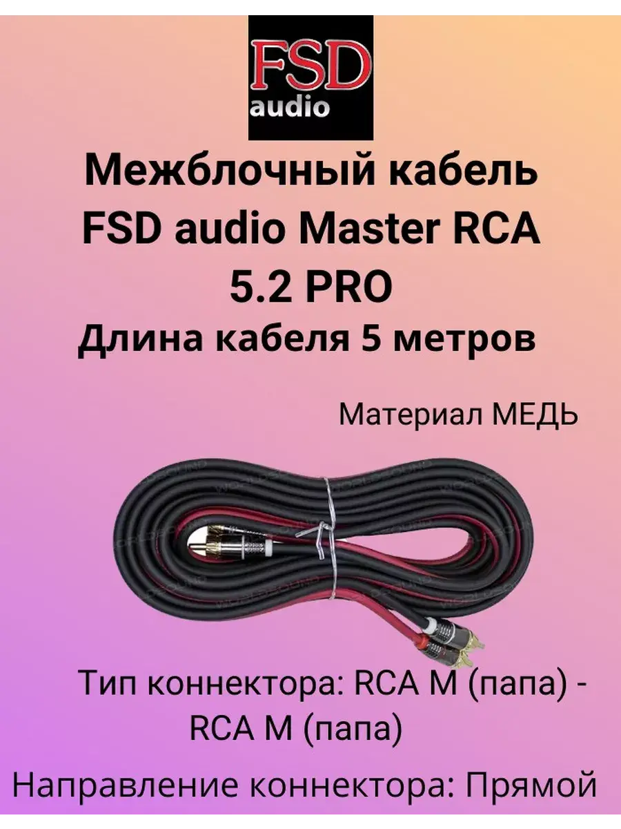 Межблочный RCA кабель Бренд: FSD audio; Серия: Master; Модель: RCA 5.2; Тип: 2RCA — 2RCA; Материал проводника кабеля: медь; Длина кабеля, м: 5; Тип коннектора: RCA M (папа) - RCA M (папа); Направление коннектора: Прямой; Межблочный кабель предназначен для соединения различных блоков аудио системы, а именно соединения магнитолы с усилителем, процессора с усилителем, активного кроссовера с усилителем.
