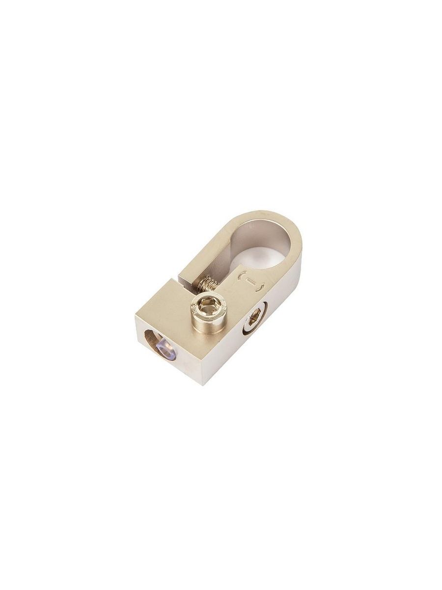 Выход 4GA (21,2 мм2). Дополнительная возможность подключения провода питания или заводского жгута кольцевой клеммой под шестигранный винт на верхней поверхности. Цвет- никель.Размер: 50мм х 23мм х 14мм. Монтажное отверстие для стойки аккумулятора: диаметр 18.9мм - 16.9мм с шестигранным винтом для фиксации клеммы на стойке.