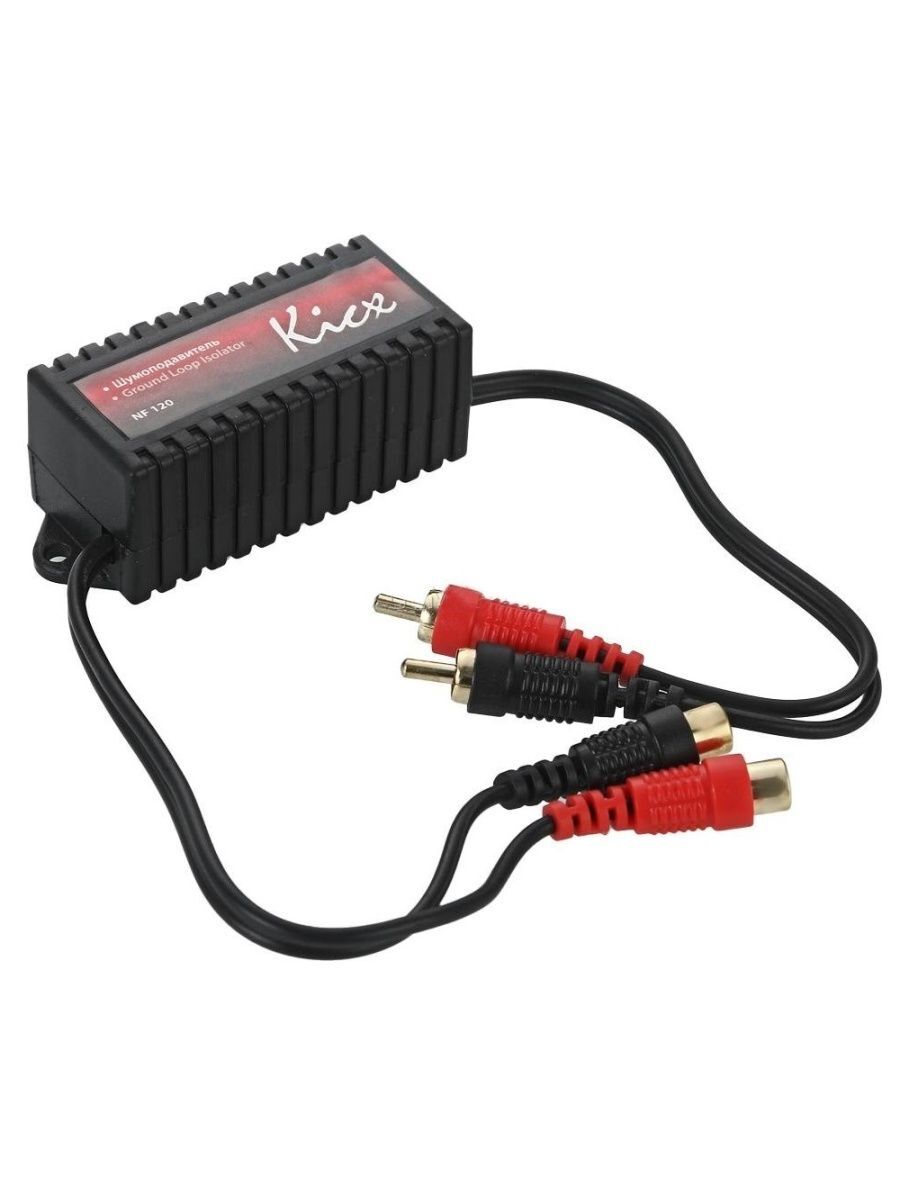 При установке усилителя часто возникают помехи, вызванные паразитными контурами. Несколько точек заземления на корпусе с разным сопротивлением создают блуждающие токи, которые вызывают шум. Для устранения этих проблем можно использовать 2-х канальный линейный шумоподавитель NF 120. Имеет два канала, входы 2 RCA "мама" и выходы 2 RCA "папа", входное и выходное сопротивление 300 Ом, корпус из пластика, чёрный цвет.