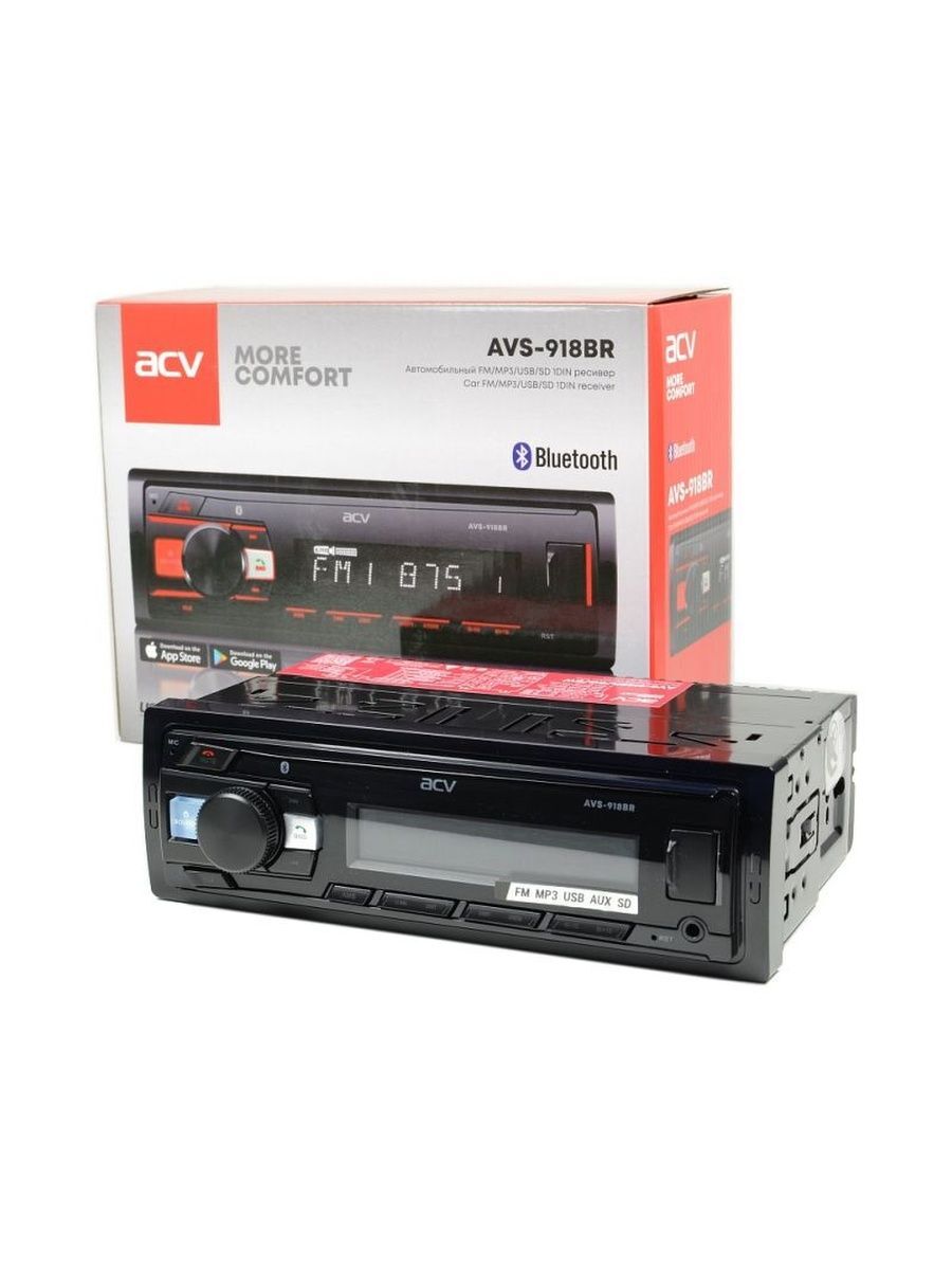 Магнитола автомобильная 1 DIN с красной подсветкой, съемной панелью и Bluetooth (блютуз) ACV AVS-918BR имеет все необходимые функции для воспроизведения музыки в автомобиле. Она читает MP3/WMA файлы и оснащена RCA стерео аудио выходами. Частотный диапазон 20- 20000 Гц. Автомагнитола с Bluetooth 4.0 (блютузом) позволяет совершать звонки по Hands-Free, а вертикально поляризованный LCD дисплей обеспечивает превосходную визуализацию контента и его читабельность в любых условиях. Плеер в машину имеет регулировки тембров НЧ, ВЧ, баланс правых и левых, фронтальных и тыловых динамиков, а также возможность подключения усилителя и построения на ее основе качественной системы автозвука с несколькими компонентами. Головное устройство имеет разъемы на передней панели AUX (Mini Jack) 3.5мм, USB. Читаемые носители AUX, SD, MMC, USB. В автопроигрывателе есть поддержка Android. ACV AVS-918BR позволит наслаждаться музыкой с внешних носителей и слушать радио, совершать звонки по Bluetooth и воспроизводить аудио контент со смартфонов. Вертикально поляризованный LCD дисплей обеспечивает превосходную визуализацию контента и его читабельность в любых условиях. На плеер в машину ACV AVS-918BR выводится информация о времени, аудиофайлах или каналах прослушиваемых станций. Носители подключаются через фронтальный USB/SD вход, ресивер поддерживает популярные форматы файлов MP3,WMA, читает карты памяти microSD стандарта 2.0.