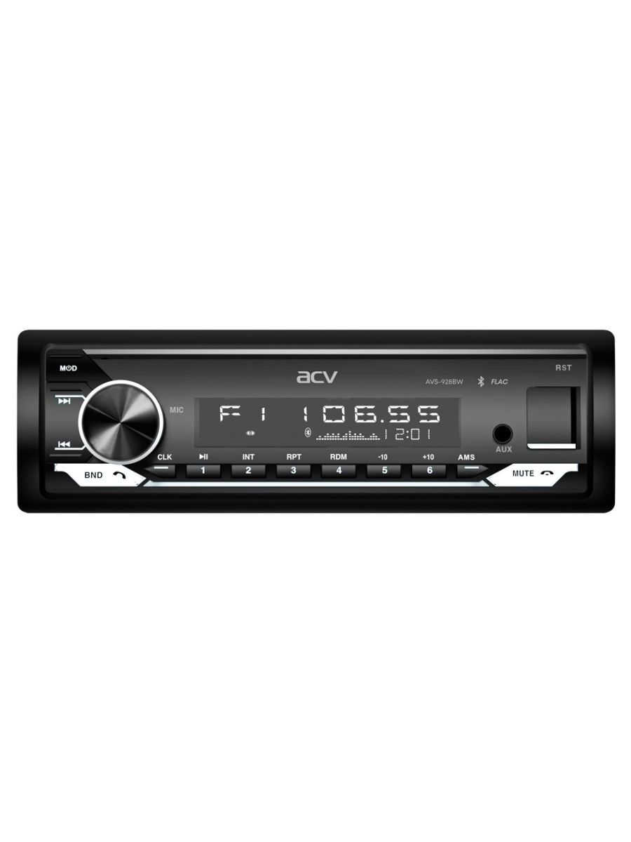 Магнитола в автомобиль с Bluetooth (Блютуз) ACV AVS-928BW выполнена в стандартном типоразмере 1 DIN, совместима со многими автомобилями и обеспечивает высокое качество звучания. Данная модель обладает поддержкой 4-х каналов с выходной мощностью до 200 Вт. Ресивер ACV AVS-928BW имеет разъемы на передней панели AUX, SD и USB, а также кардридер. Поддерживаемые форматы (USB/карта памяти) - MP3, WMA, частотный диапазон составляет 30 – 15000 Гц. Магнитола имеет 2 аналоговых выхода линейного аудио (RCA), а на тыльной стороне разъемы для антенного входа и подключения по ISO. Автомагнитола совместима с мобильными устройствами Android (Андроид) и iOS. Установочная глубина составляет 90 мм. На дисплее LCD с белой подсветкой отображаются время, диапазоны радиостанций и другая информация. Монтажный комплект гарантирует удобство установки проигрывателя в автомобиле. С помощью магнитолы с Bluetooth 2.0 вы сможете прослушивать музыку с вашего смартфона или планшета без проводов, а также принимать телефонные звонки в режиме hands-free.