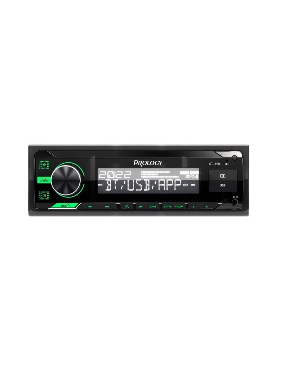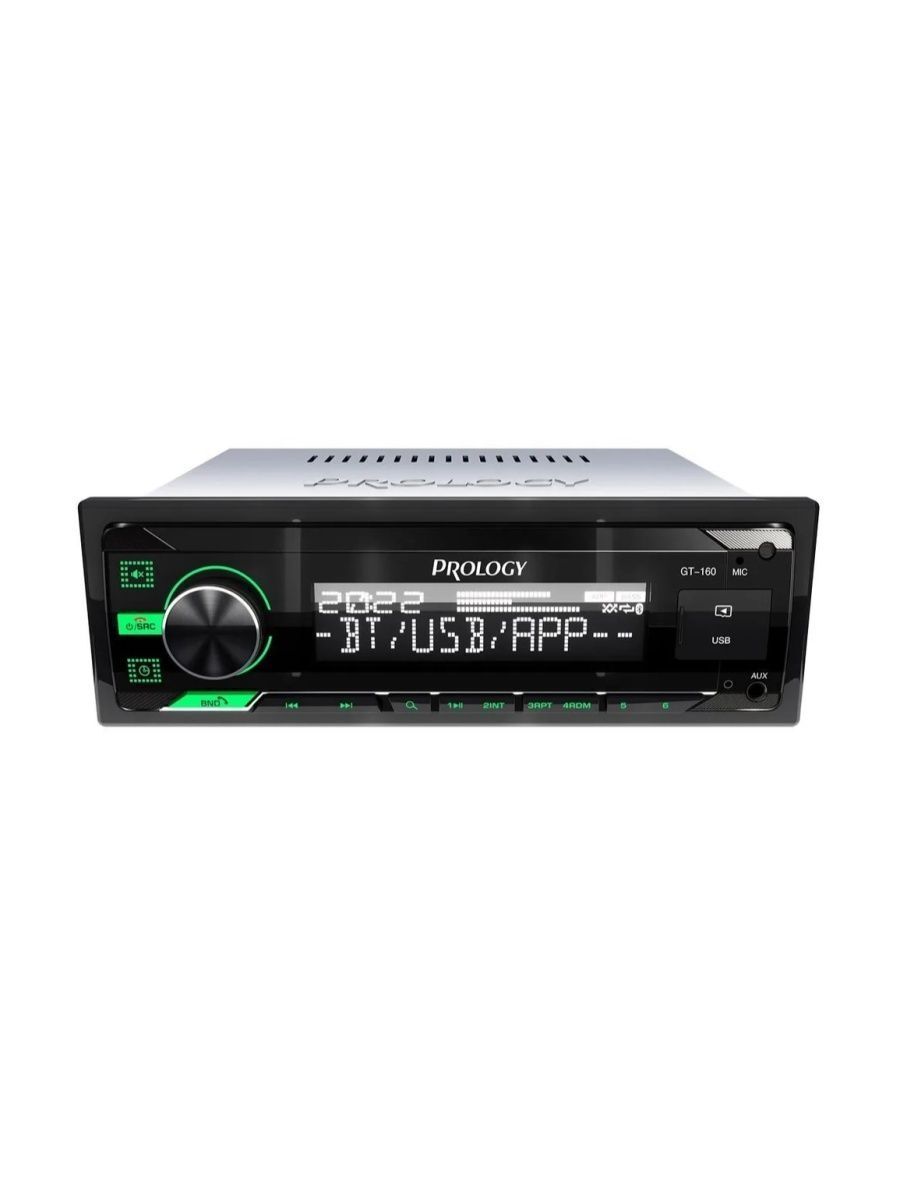 Магнитола с подсветкой для автомобиля Prolodgy GT-160 ВТ-недорогая современная и широко функциональная автомагнитола стандартного установочного размера 1DIN с минимальной монтажной глубиной в 78 мм. Небольшая установочная глубина корпуса устройства позволяют установить практически в любом современном автомобиле. Передняя панель автомагнитолы несъёмная, подсветка кнопок управления зеленого цвета. Максимальная мощность встроенного усилителя для 4 каналов - 55 Вт на канал, с предусмотренной возможностью подключения к ним автомобильных динамиков с сопротивлением на 4 и 8 Ом.Ресивер обеспечивает качественный прием радиостанций в диапазоне FM и сохраняет в памяти до 18 станций , которые легко настроить при помощи автоматического поиска, воспроизводит самые популярные форматы медиафайлов. Встроенные в заднюю панель устройства 4 RCA разъёма линейных аудиовыходов для подключения дополнительных внешних усилителей, позволят при желании создать в машине сложную и мощную музыкальную систему, подключив мощную акустику или большой низкочастотный динамик (сабвуфер). Совместима с ЭРА-ГЛОНАСС.