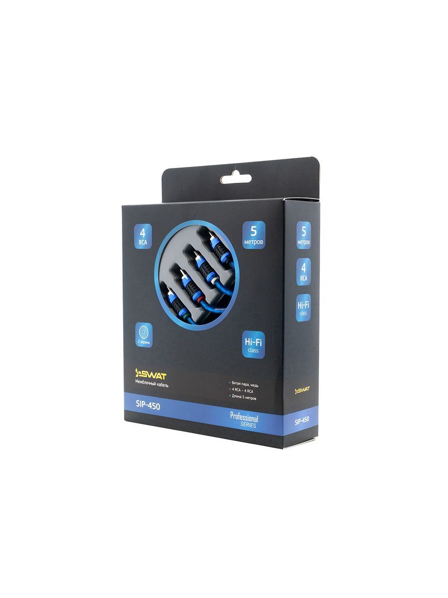 SWAT SIP-450 - межблочный кабель серии Professional. Межблочный кабель Swat SIP-450 - это максимальная точность и передовые параметры. Конструкция - Витая пара с плотным плетением для помехозащещенности.[Особенности] Конструкция - Витая пара с плотным плетением для помехозащещенности. Покрытие RCA разъемов - Никель . Внешний диаметр - 5 мм. [Описание] Конструкция: витая. Материал проводников: медь. Количество каналов: 4 (4RCA–4RCA). Длина, м: 5. Экран: 2. Цвет изоляции: матовый желтый. Внешний диаметр, мм: 5