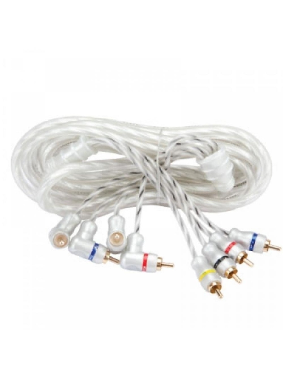 Межблочный 4-х канальный кабель MRCA45 4RCA-4RCA серии М,- это экранированная витая пара в прозрачной изоляции. RCA кабель имеет пластиковые, литые коннекторы с латунными никелированными контактами тюльпанами. Низкая внутренняя емкость позволяет без потерь предавать высокие частоты. Провода для усилителя в автомобиль удобны при компактном монтаже. Коннектор - 4RCA-4RCA. Форм фактор - папа/папа. Материал проводника - медно-алюминиевый. Количество слоев и материал изоляции коаксидального кабеля - двойная изоляция ПВХ. Покрытие контакта - антикоррозионное. Длина 5 метров. Подключение колонок, подключение динамиков, подключение усилителя, подключение автомагнитолы.