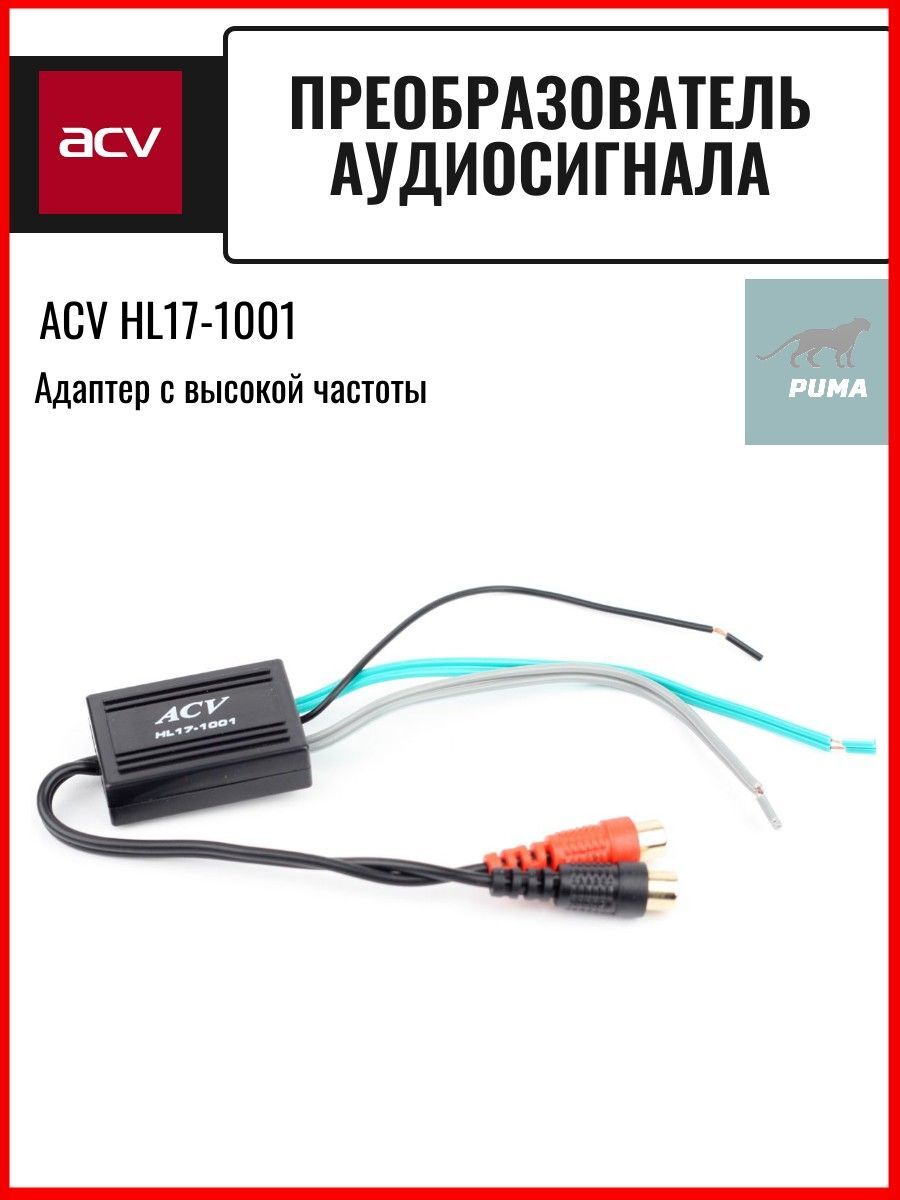 Адаптер для магнитолы ACV HL17-1001, конвертер высокого-низкого уровня предназначенный для соединения входов усилителей с головными устройствами или магнитолами 1DIN, 2DIN без линейных выходов. Он преобразует поступающие сигналы в аудиосигнал линейного типа. Подключается через акустические выходы к RSA-входам усилителей. В штатных автомагнитолах нет линейных выходов, что приносит значительные затруднения при подключении усилителей. Адаптер линейного входа – это специальное согласующее устройство, который делает соединение магнитолы и усилителя возможным: выходной сигнал ресивера согласуется с входным сигналом усилителя с требуемым значением. Максимальный уровень сигнала не более 8В.