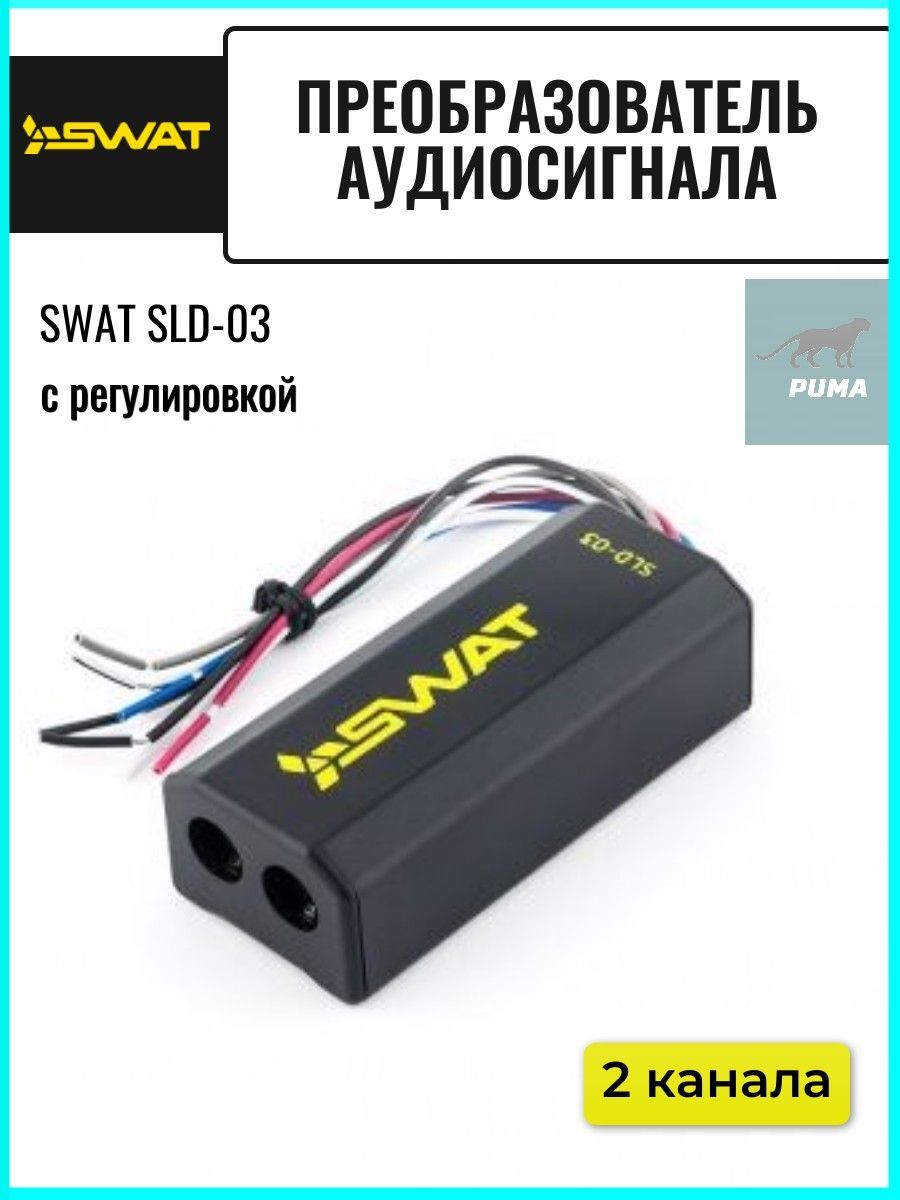 Преобразователь уровня сигнала (конвектор автомобильный) 2 канальный hi-low SWAT SLD-03 с регулировкой усиления. Преобразование сигнала высокого уровня (HI-input) в низкий (RCA), для подключения усилителей мощности к головным устройствам (автомагнитолам) без RCA выходов. Количество каналов высокого уровня (вход) - 2. Количество каналов RCA (выход) - 2. Автоматическое включение при наличии сигнала на входе. Регулировка коэффициента усиления (право-лево). Питание от бортовой сети 12 В. Мощность сигнала на входе 50 Вт. Максимальное напряжение на выходах RCA. 2 Remote на выходе (1А). Материал корпуса - пластик.