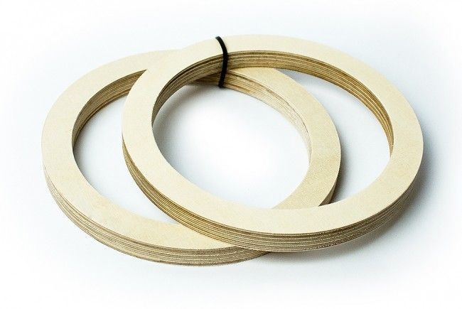Диаметр - 13 см. Толщина колец 18 мм. Материал ФАНЕРА. В комплекте 2 шт. Идеально для динамиков.