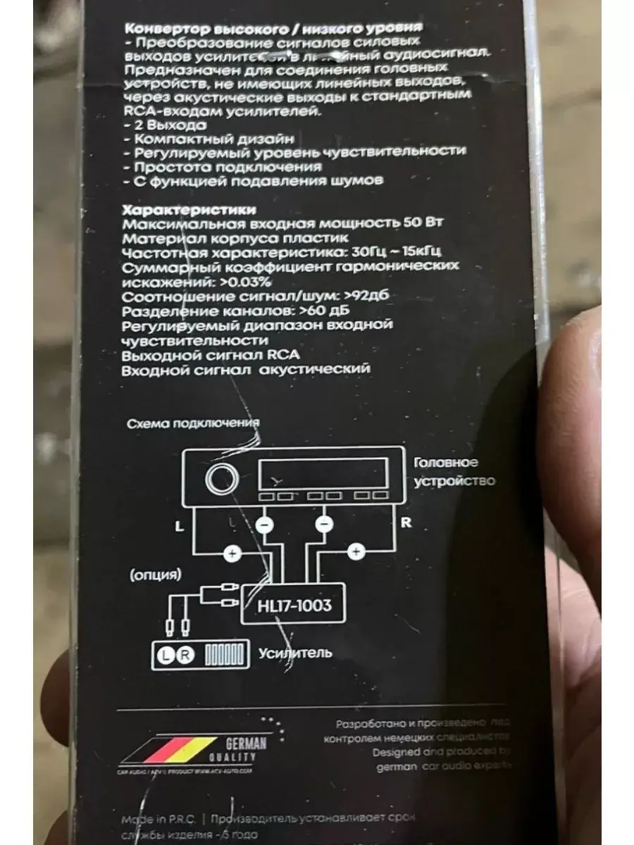 В штатке нет выходов под провода тюльпаны? Не проблема!Универсальный линейный преобразователь с функцией подавления шума для устройств мультимедиа любого типа решит эту проблему. HL17-1003 предназначен для соединения выходов RCA на усилителях к магнитоле. Преобразует высокие частоты в линейные. Благодаря этому адаптер позволит успешно подключить акустические компоненты в вашем автомобиле! Конвертер незаменимый аксессуар для автозвука и автоакустики.