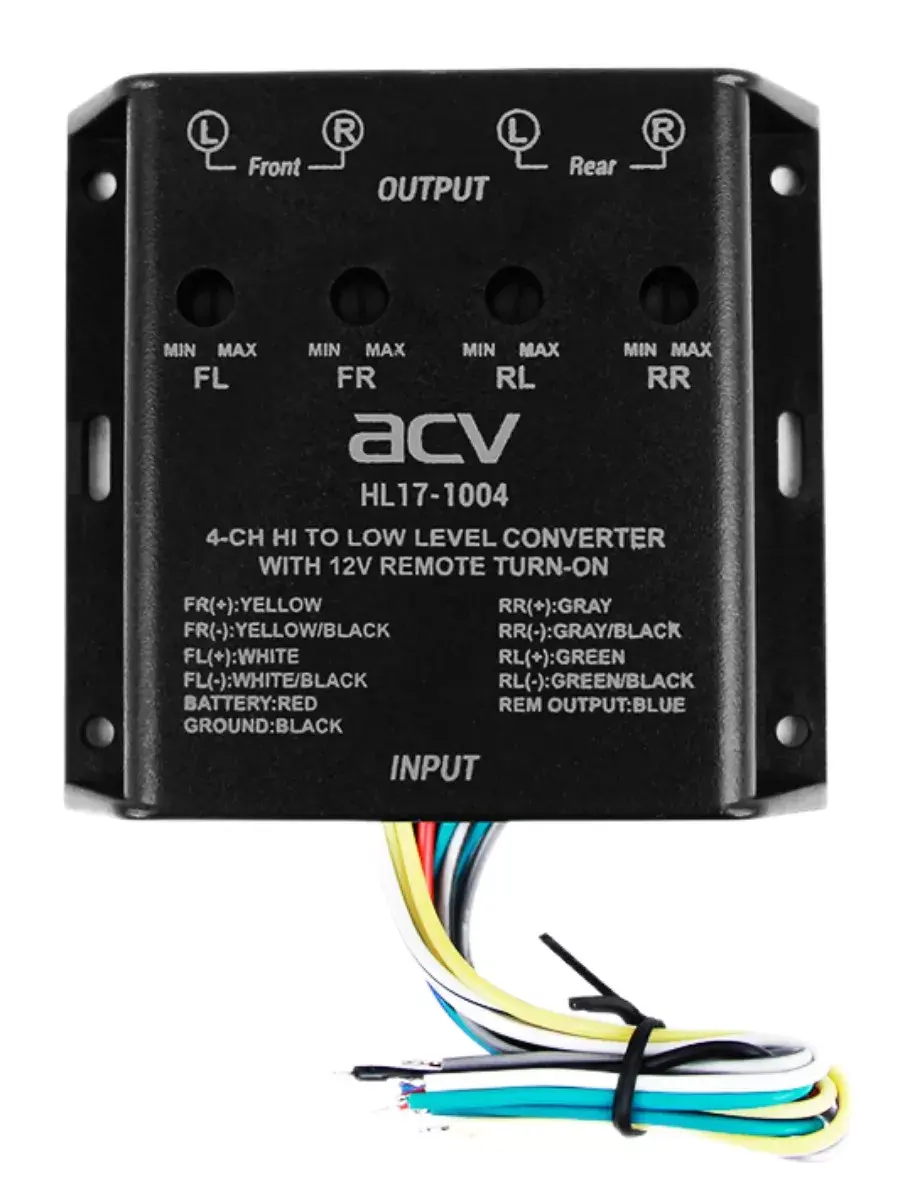 В штатке нет выходов под провода тюльпаны? Не проблема!Универсальный линейный преобразователь с функцией подавления шума для устройств мультимедиа любого типа решит эту проблему. HL17-1004 предназначен для соединения выходов RCA на усилителях к магнитоле. Регулируемый диапазон входной чувствительности, автоматическое включение/выключение. Преобразует высокие частоты в линейные. Благодаря этому адаптер позволит успешно подключить акустические компоненты в вашем автомобиле! Конвертер незаменимый аксессуар для автозвука и автоакустики.