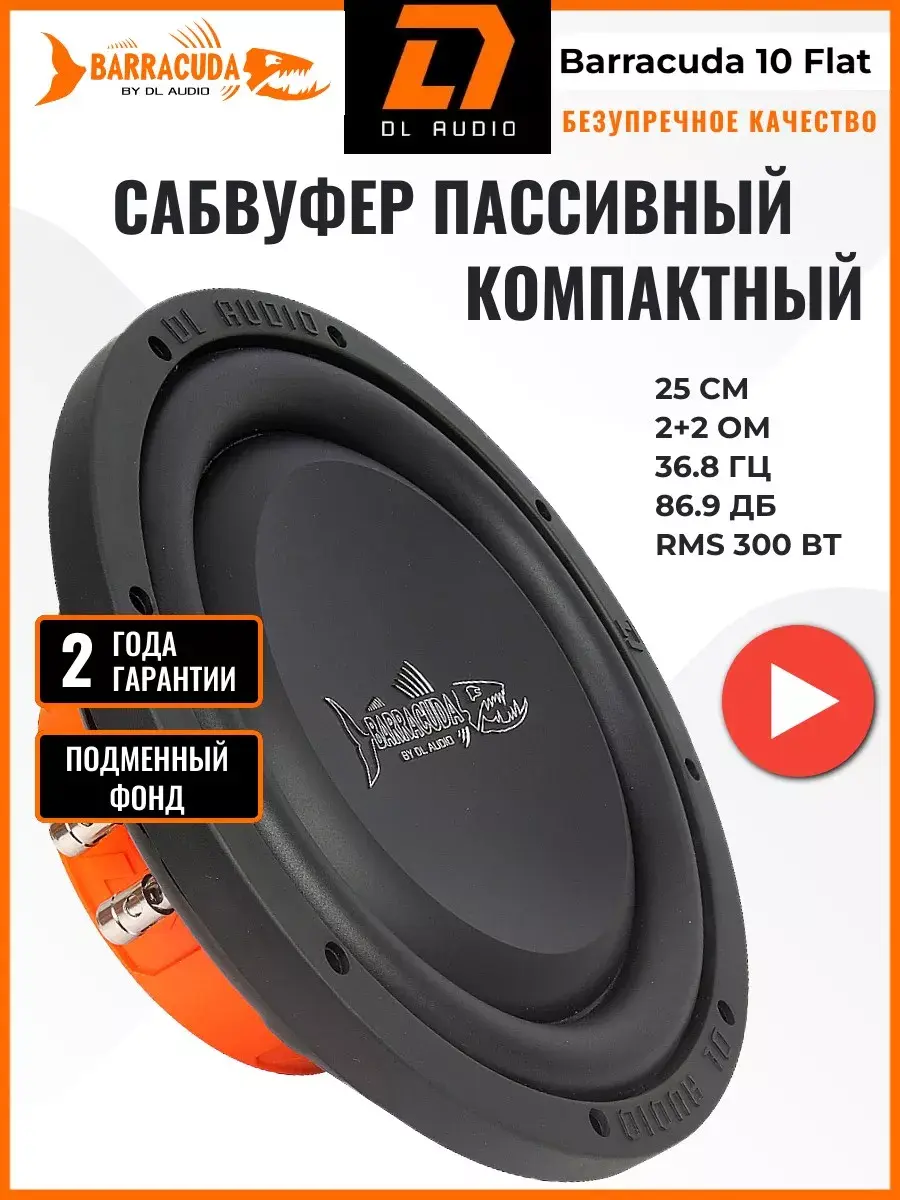 Если тебе нужен хороший мягкий, плотный бас в относительно качественную аудио систему в направлении SQ, то плоский сабвуфер Barracuda 10 Flat в типоразмере 10 дюймов отлично подойдет, особенно в своей ценовой категории. Оптимальный объем 16-18 литров, этого более чем достаточно чтоб раскрыл себя в твоем автомобиле. Саб не рассчитан на повседневное «валево», в нем высокий уровень отдачи в нижнем диапазоне частот и ультракомпактная посадочная глубина — всего 8 см. Предназначен для использования в стелс корпусах или подсиденьем. Стальная корзина, подвес из вспененного полиуретана, центральный колпак имеет больший диаметр, который вместе с диффузором создают довольно жёсткую конструкцию подвижной части.Продуманное охлаждение звуковой катушки.Качество и надежность на высоком уровне.