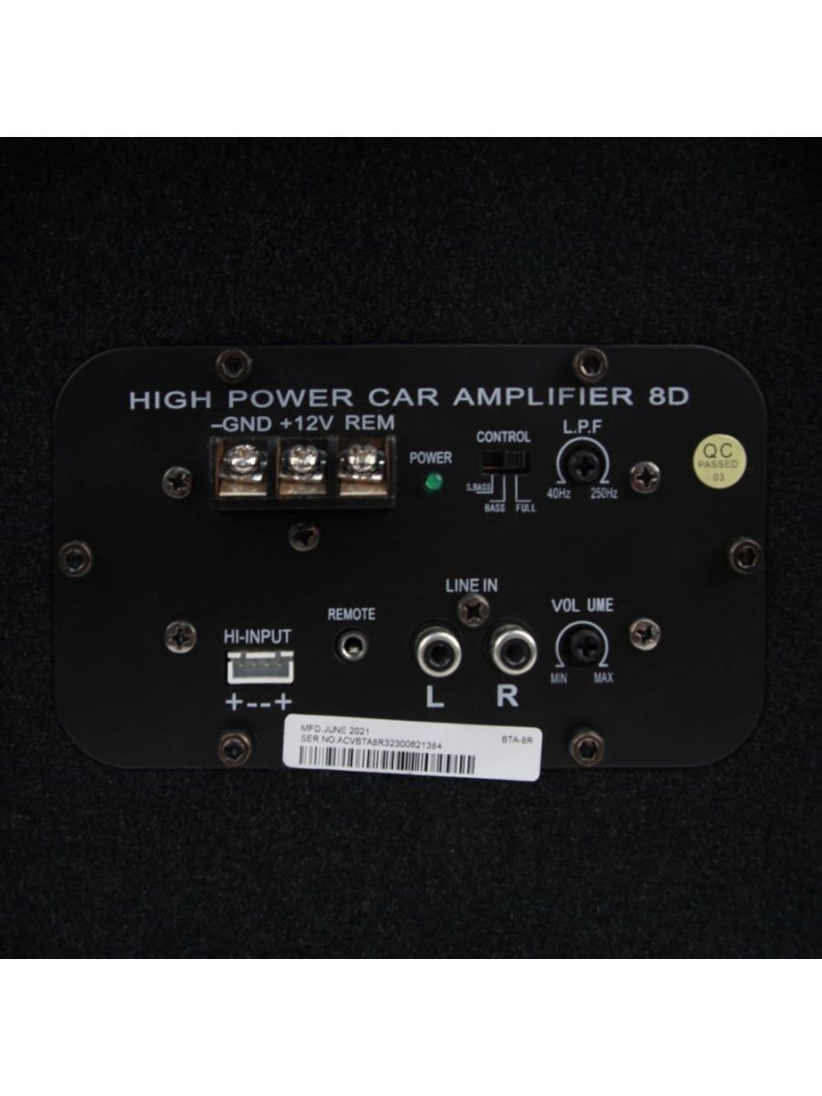 Активный сабвуфер ACV BTA-8R в фазоинверторном корпусе со встроенным усилителем, звуковой катушкой 1.39" и магнитом в 20 унции. В комплекте идет выносной Бас буст, дизайн дополнен оригинальными грилями. Диапазон частот 40 - 200 Гц. Наличие выходов низкого и высокого уровня значительно расширяет возможности подключения. Он прекрасно подходит для дополнения звучания портативной акустической системы, дает густые басы и вибрацию. Такой эффект и ищут настоящие поклонники драйва. Фазоинверторный корпус обеспечивает нормальную работу низкочастотного динамика, а мощный усилитель дает высококачественный звук. Устройство удобно в установке и подключении, обладает достаточно компактными размерами, он легко помещается даже в небольшом багажнике автомобиля. Это своеобразный компромисс между масштабами звучания и нужными характеристиками воспроизведения НЧ. SPL: 105±2 дБ / 70В. Диффузор: Бумажный диффузор. Материал подвеса: Резина. Магнит:20 унций. Диапазон частот: 40 - 200 Гц. Дополнительно: Выносной Бас буст. Пиковая мощность: 450 Вт. Номинальная мощность: 76 Вт. Чувствительность: 86 ± 2 дБ. Импеданс: 4 Ом (одна катушка). Корпус: Фазоинверторный корпус со встроенным усилителем класса АВ.