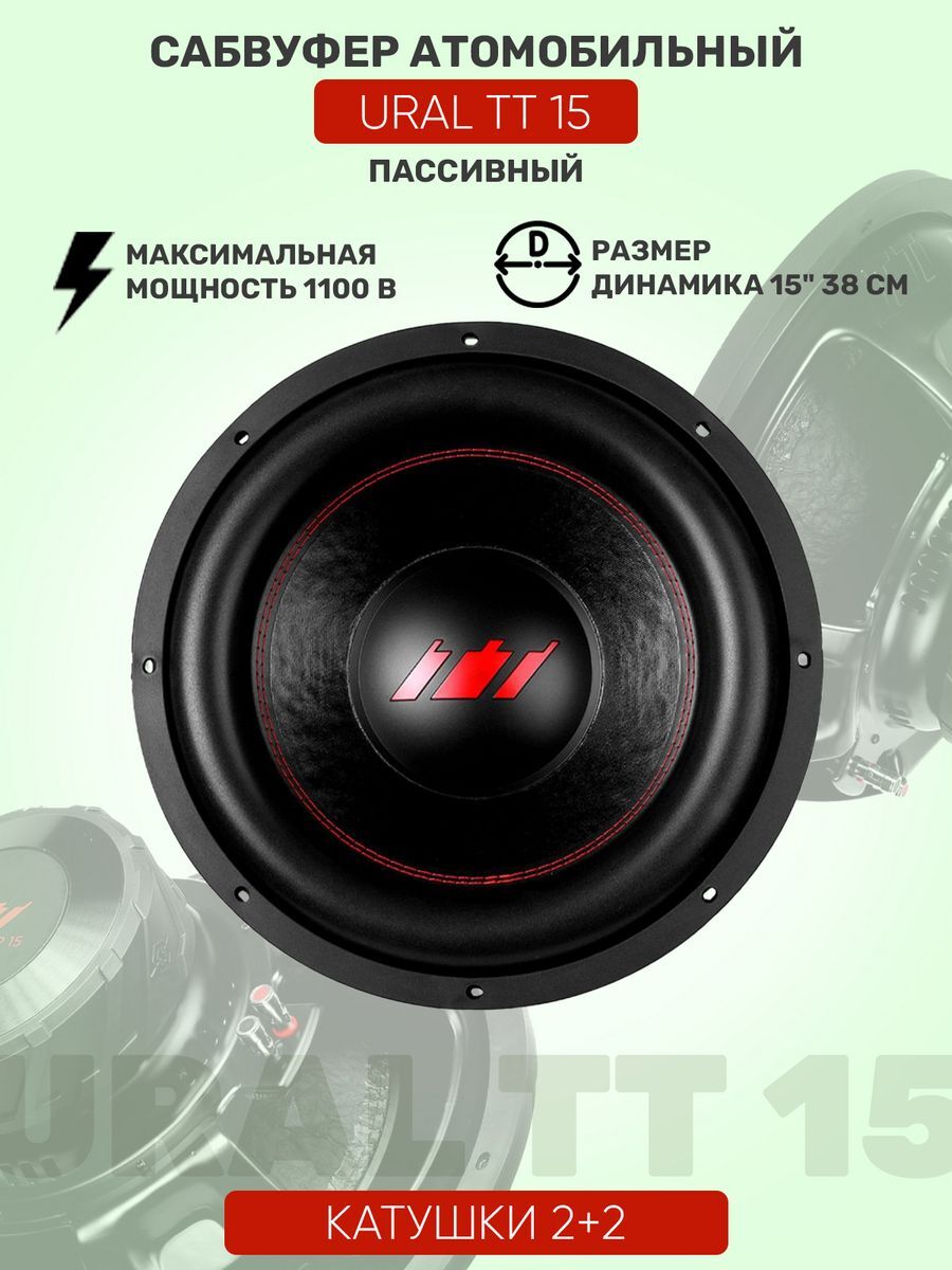 САБВУФЕР УРАЛ ТТ 15 - пассивный сабвуфер с мощной магнитной системой и высокоэффективным отводом тепла от звуковой катушки. Корзина с усиленным профилем и дополнительными ребрами жесткости. Данный сабвуфер подойдет как новичку так и профессиональным SPLщикам. За счет своей универсальности и возможности играть в ЗЯ объёме как дополнение к штатной акустике и в корпусе фазоинверторного типа для достижения большего давления. Устойчивая к перегрузкам звуковая катушка 3′′ (76,2 мм) с высотой намотки 30 мм на алюминиевом каркасе увеличенного сечения. Надежная, износостойкая подвижная система. Два кольцевых ферритовых магнита (156x90x20 мм каждый).