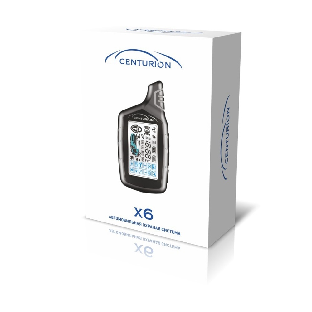 Centurion X6 - это автомобильная сигнализация, которая способна не только защитить автомобиль, но и сделать его эксплуатацию более комфортной. Данная модель автосигнализации оснащена довольно широким рядом охранных и сервисных функций, имеет удобное управление и подходит практически на любые модели автомобилей. Имеет защищенный от сканирования код и обеспечивает защиту по 7-ми зонам охраны. Сообщение о воздействии на автомобиль с указанием зоны моментально поступает на брелок. Также оснащена комплектом современных индикационных функций: режимом охраны, текущим временем, будильником, таймером. Радиус ее действия составляет примерно 1200 метров по каналу пейджера. 2 Брелока. Основной брелок выполнен в компактном корпусе с покрытием **soft-touch**, оснащен ЖК-дисплеем и имеет обратную связь. Функция **Anti-Hi-Jack** позволяет заблокировать работу двигателя при разбойном захвате транспортного средства. Без автозапуска.