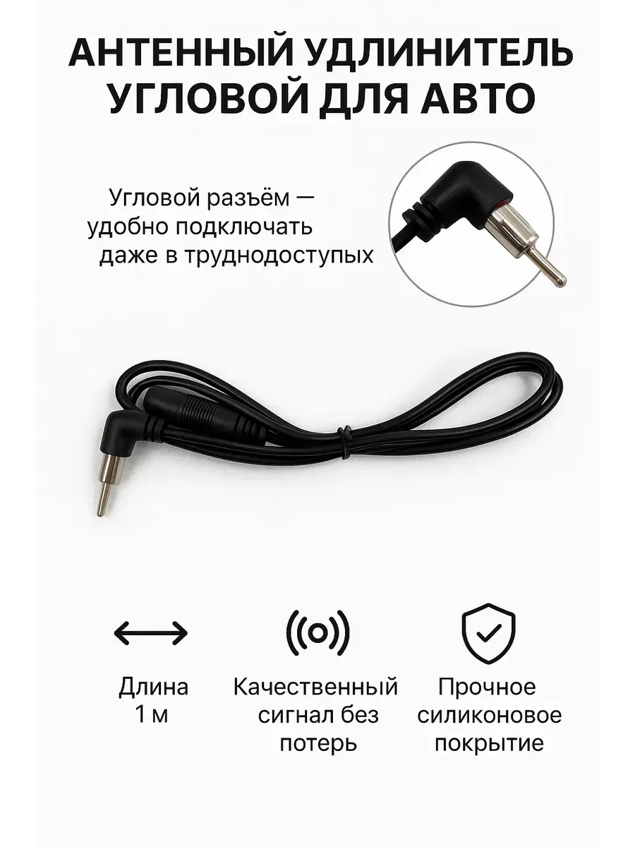 Автомобильный антенный удлинитель длиной 1 метр с угловым разъёмом — незаменимый аксессуар для автолюбителей, который позволяет увеличить длину антенны вашей магнитолы.