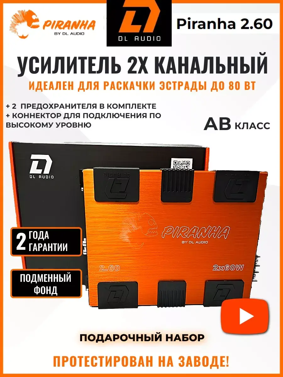 Надежный автомобильный двухканальный усилитель в машину Dl Audio Piranha 2.60 класса AB для пары динамиков, рупоров или одного саба. Идеален для раскачки всей бюджетной эстрады до 80 Вт и SQ. Обладает возможностью подключения напрямую от штатки. Не требует много питания. Усилок с функцией bass boost, а так же с фильтрами позволяющими подрезать подключаемые колонки «сверху» и «снизу» одновременно. Имеет накладки для защиты алюминиевого корпуса с эффективным теплоотводом и усиленную вентиляцию. За счет малого размера можно разместить даже под сиденьем. Оригинальный товар с гарантией от производителя. Вся продукция протестирована на заводе. Будет отличным подарком для любого любителя автозвука.