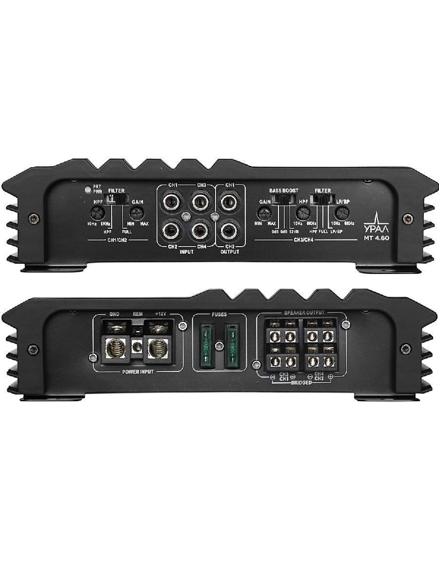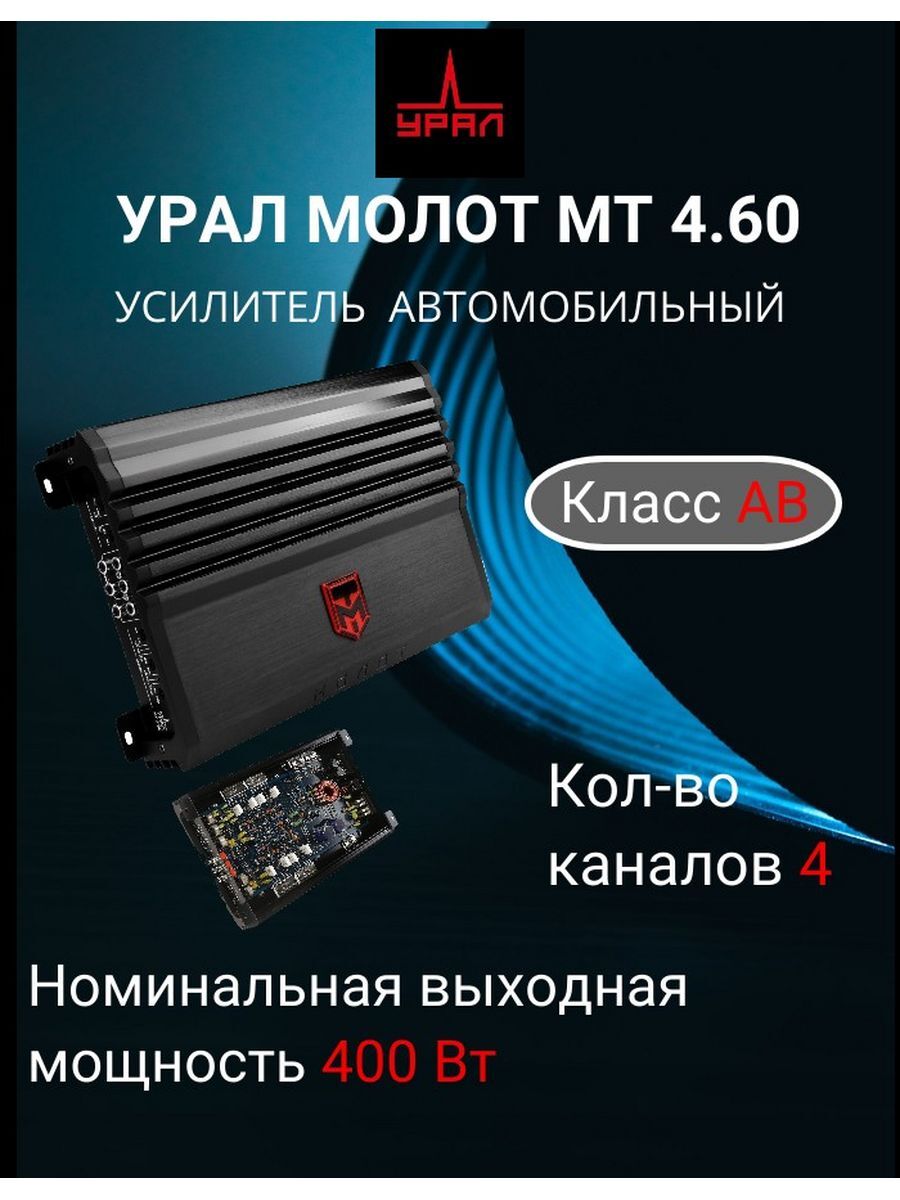 В усилителе звука в машину УРАЛ МОЛОТ МТ 4.60 представлена автоматизированная сборка, минимизирующая влияние человеческого фактора. Автомобильный усилитель звука УРАЛ МОЛОТ МТ 4.60, для колонок 10, 13, 16, 16.5 и 20 см, поможет вашей аудиосистеме зазвучать по-новому. 4-канальный, в автомобиль, в машину. Доступная серия усилителей URAL призванная дать любителям автозвука возможность получить качественную продукцию по минимальной ценеУ усилителя Урал сохранены все фирменные регулировки полосовых фильтров. Впервые в бюджетной серии автомобильного усилителя звука нами применена защита по максимальному напряжению и дополнительная защита от разряда аккумулятора. Защищенные терминалы цилиндрического типа упрощают подключение кабелей питания и акустики. Алюминиевый радиатор из полноценного профиля обеспечивает эффективный теплоотвод. Необходимо подчеркнуть, что в усилителе автомобильном URAL MT 4.60 реализована идея позолоченных разъемов. Подключение проводов ведется стандартным способом. Усилитель звука автомобильный — это аудиокомпонент, главная задача которого — усилить слабый сигнал, поступающий от источника звука, например, от автомагнитолы.