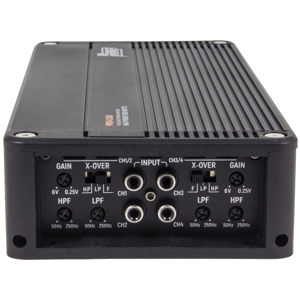 Серия PRO создана специально для SQ (качество звучания) начального и среднего уровня. За основы были взяты наработки премиальных различных брендов, так что с полной уверенностью можно сказать, серия AMP PRO включает в себя многолетний опыт применения моделей D класса в car Audio. Отличаются своими компактными размерами и высоким КПД ( более 75%) и прекрасным звуком. Что ничего не мешало наслаждаться правильным звуком, фильтры HPF и LPF можно отключить, режим Direct. А чтобы фильтра не вносили своих искажений при работе, мы не стали делать их слишком широкими и ограничились привычным диапазоном 250 Гц. Возможно подключение по высокому уровню, напрямую к штатной системе автомобиля. Выдает 230 Вт х 4 в 2 Ом. Возможно мостовое подключение, выдавая 460 Вт х 2 с нагрузкой в 4 Ома. Пиковая мощность 1840 Вт. Терминал зажимной, предохранители 35А х 3. Усилитель звука — это аудиокомпонент, главная задача которого — усилить слабый сигнал, поступающий от источника звука, например, от автомагнитолы