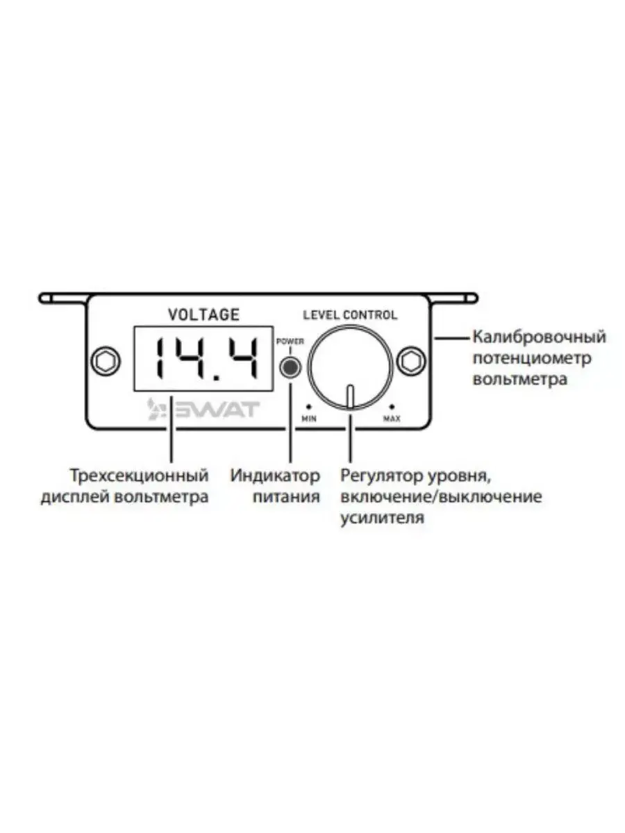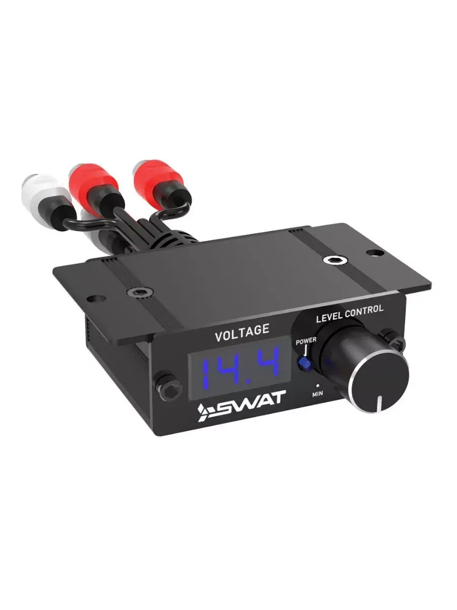 RLC-VM внешний RCA автомобильный регулятор уровня сигнала с вольтметром. Предназначен: для дистанционной регулировки входного сигнала усилителя, мониторинга напряжения питания усилителей, включения и выключения усилителя, декоративной подсветки или вентилятора охлаждения (Remote out 12V) Возможность калибровки показаний вольтметра.