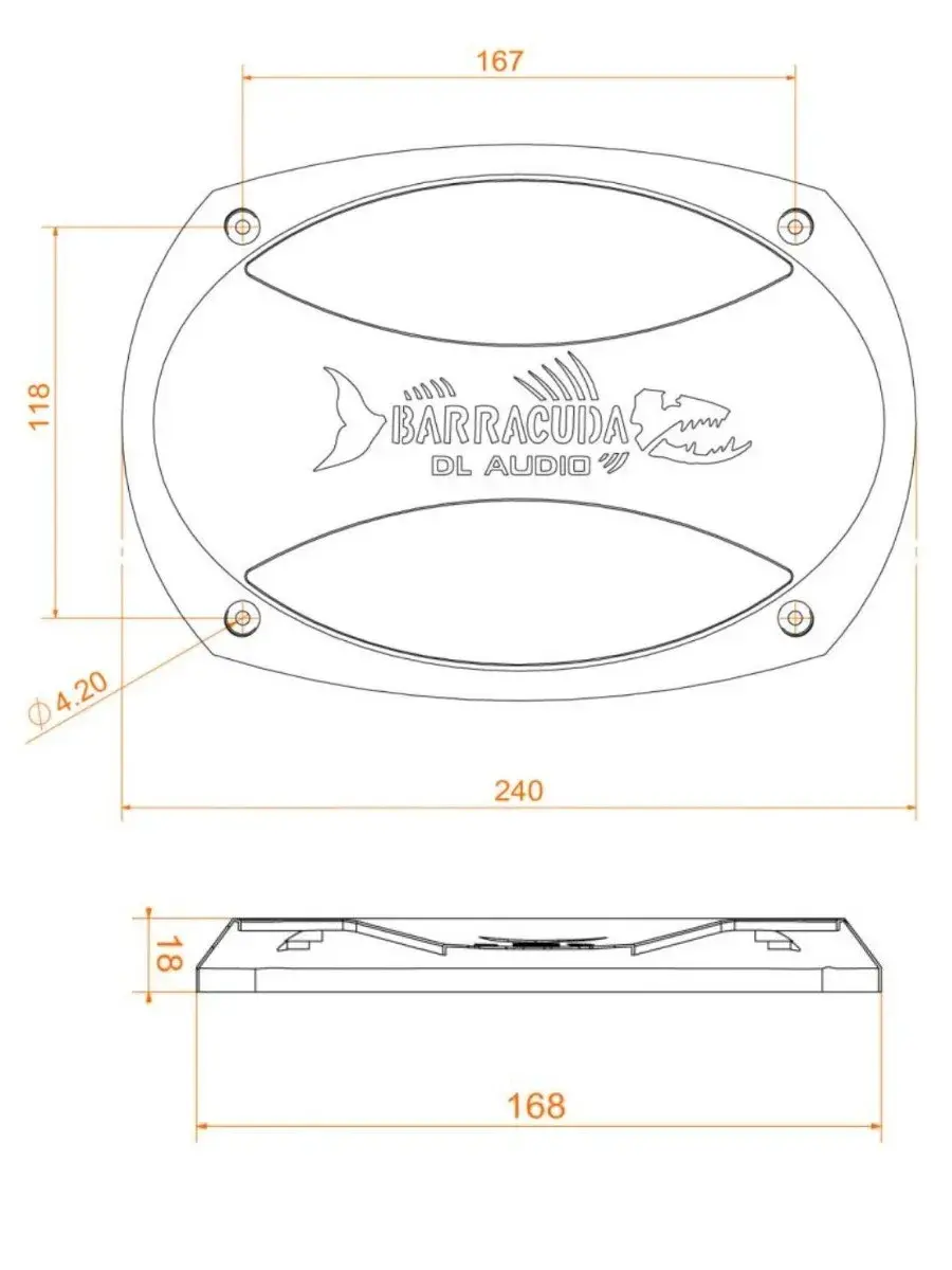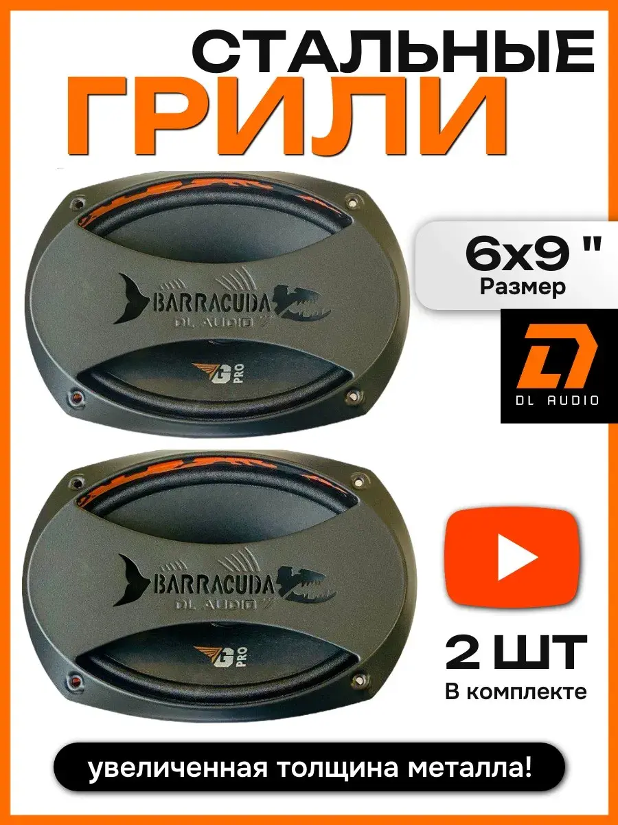 Защитная, акустическая решетка Дл Аудио Барракуда на автомобильные, овальные динамики размером 6х9 дюймов или 23х15 см оранжевого цвета. Прочный гриль для колонок блинов выполнен из стали толщиной 1мм. Комплект 2 шт. Оригинальный товар.